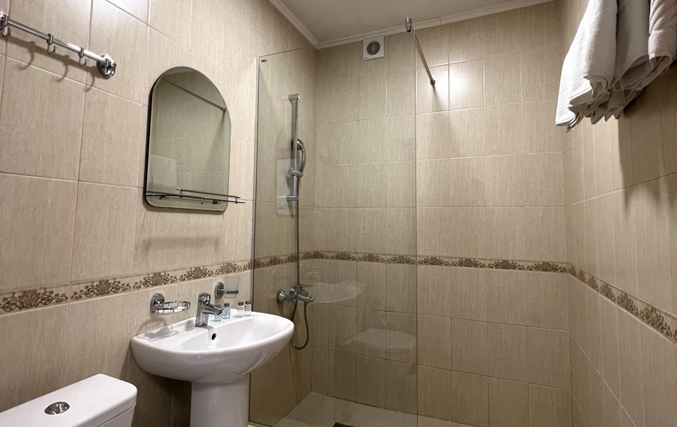 Отель старой постройки,номера не очень большие... Вид на море прекрасен,хороший ухоженный парк. Свет ,вода , кондиционер,в номере есть и вода и мыльные принадлежности. Имеется бассейн. Еда в столовой есть,разнообразная. Но!!!! В 2025году постоянная нехватка - вилок, не успевают мыть тарелки, и чашки для чая все битые или просто их нет. В один из дней были даже пластиковые приборы и бумажные стаканчики. Безусловно,это не главное в этом отдыхе- но, это действительно очень странно...учитывая современные реали и стоимость посуды и вилок!