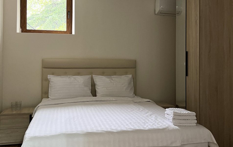 Однозначно рекомендую как отель выходного дня в течение морского несезона. Расположение в Гагре - одно из лучших, на мой взгляд. Близость к Приморскому парку, по которому можно гулять часами, лучшим ресторанам - Гагрипш и Ольденбург в шаговой доступности и конечно к морскому пирсу Гагры (если ваш спутник интересуется рыбалкой, то для него это будет очень познавательно) Номера прекрасно оборудованы, очень чисто, свежее бельё, есть халаты, пляжные полотенца, чайная станция. Отличный и большой открытый бассейн, вода в котором около 30 градусов, поэтому плавать можно круглый год. Отдельно хочется похвалить кухню и ресторан. Я мено бываю в абхазских отелях, в том числе и выше стоимостью, но такого прекрасного ресторана и отличной кухни давно не встречала. Подача и выкладка блюд совершенные. А кухня сделает 100 очков вперёд любому сочинскому перехваленному заведению общепита (найти что-то подобное здесь давно уже квест) Огромный респект шефу этого ресторана за творческий и профессиональный подход к своему делу. Печёные яблоки и творожное суфле на завтрак были просто нереально вкусными. Выбор блюд устроит самых взыскательных гостей. Да, кстати, кофе по утрам отличный - а это показатель отношения. Искренне благодарим Вас за отдых и однозначно вернёмся снова.