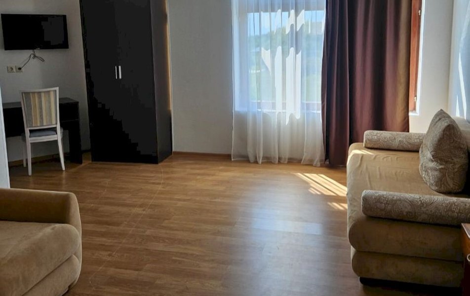 К услугам гостей номера двуспальная кровать и раскладной диван, санузел с душем. В комплектации телевизор, кондиционер, фен, туалетные принадлежности.