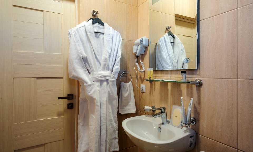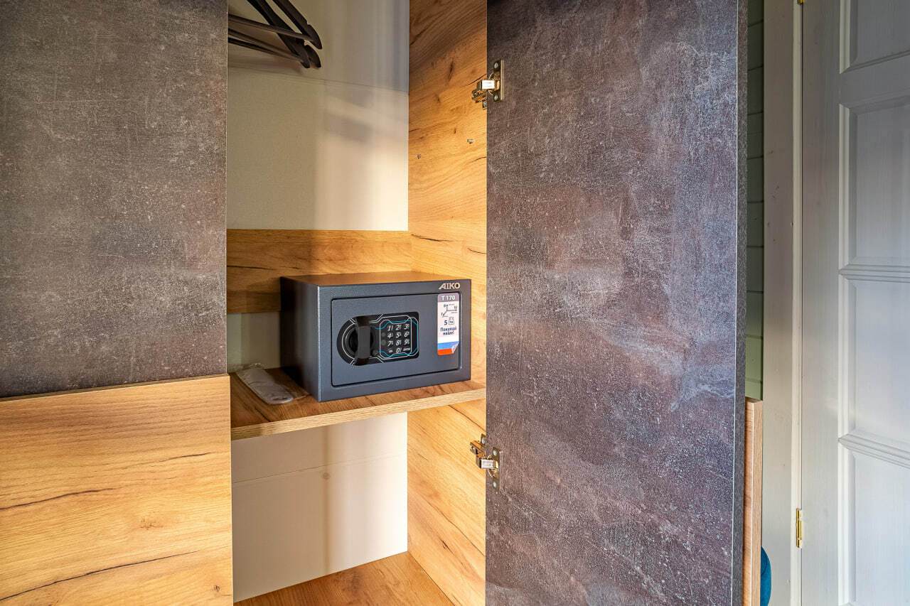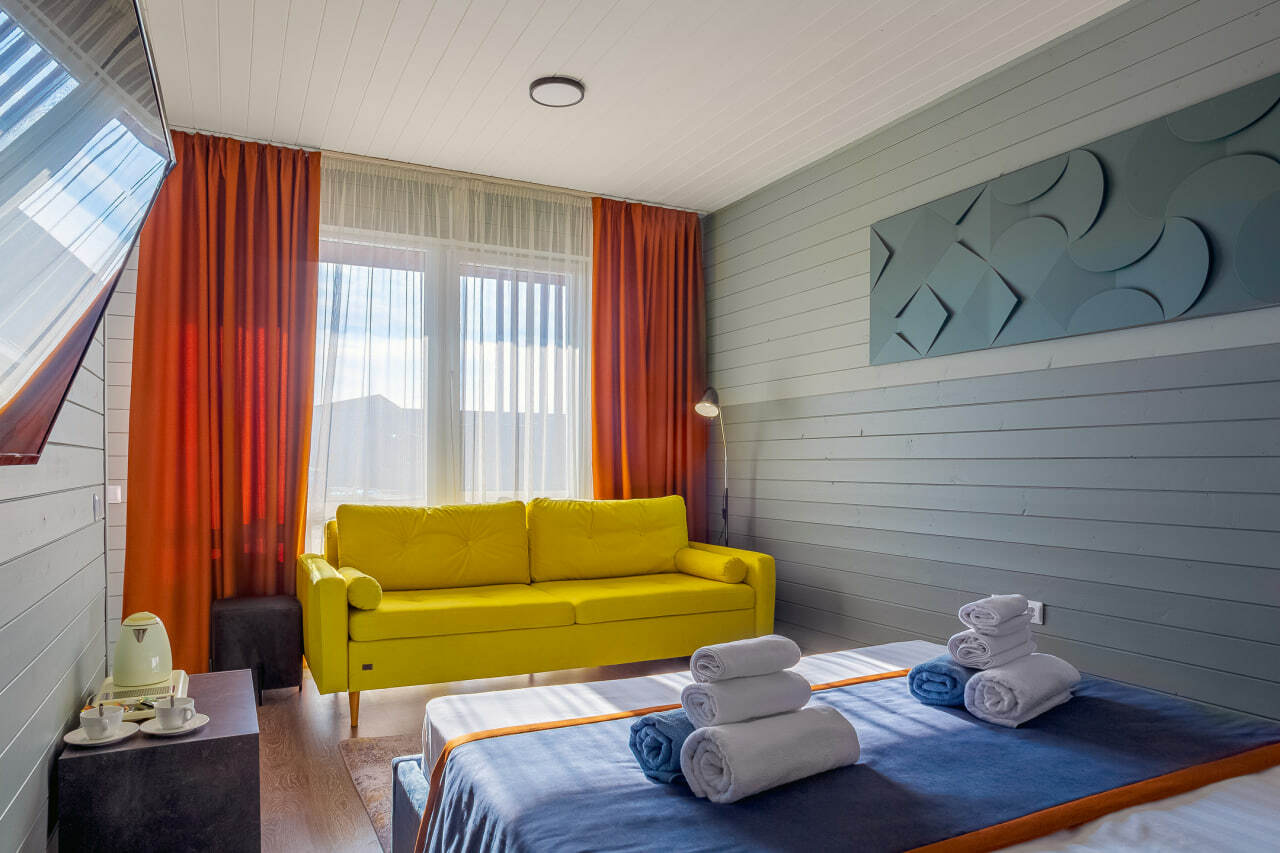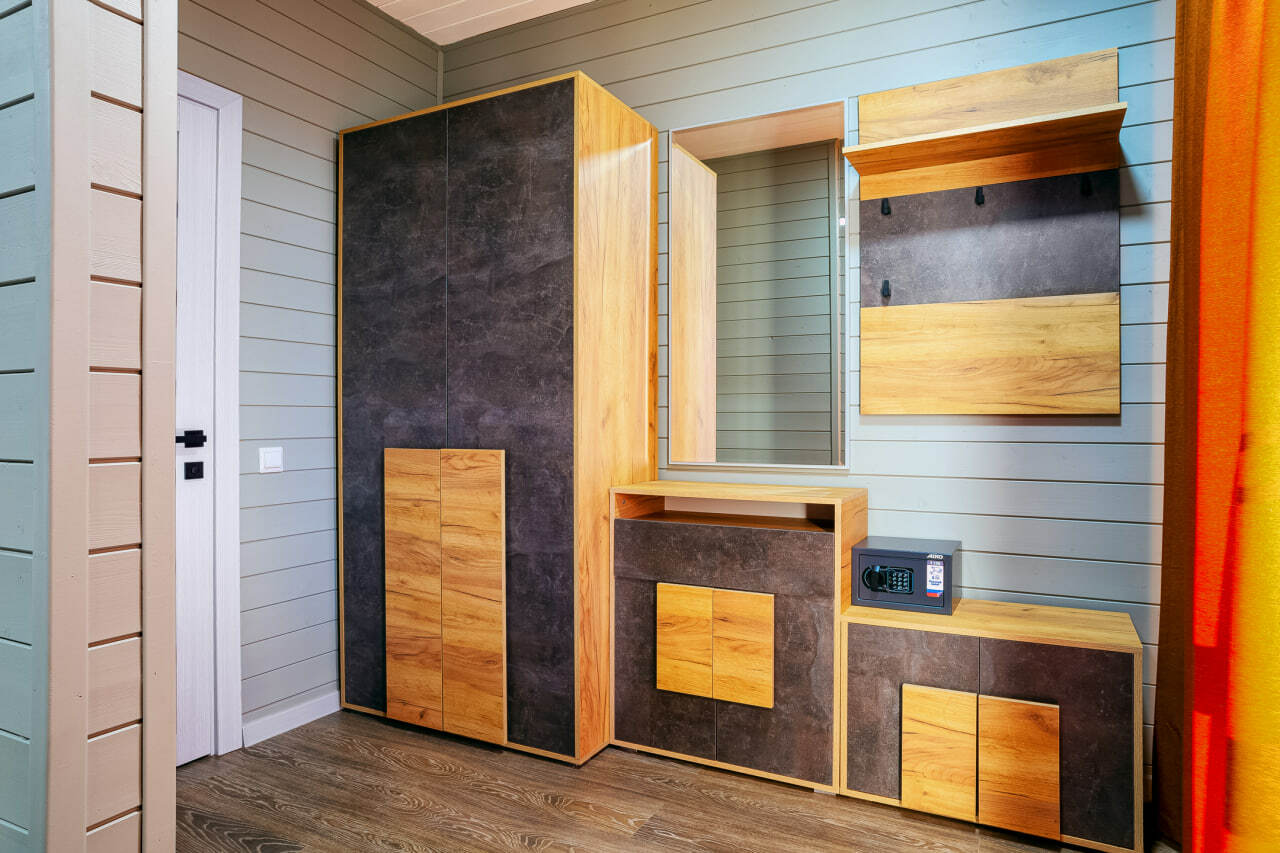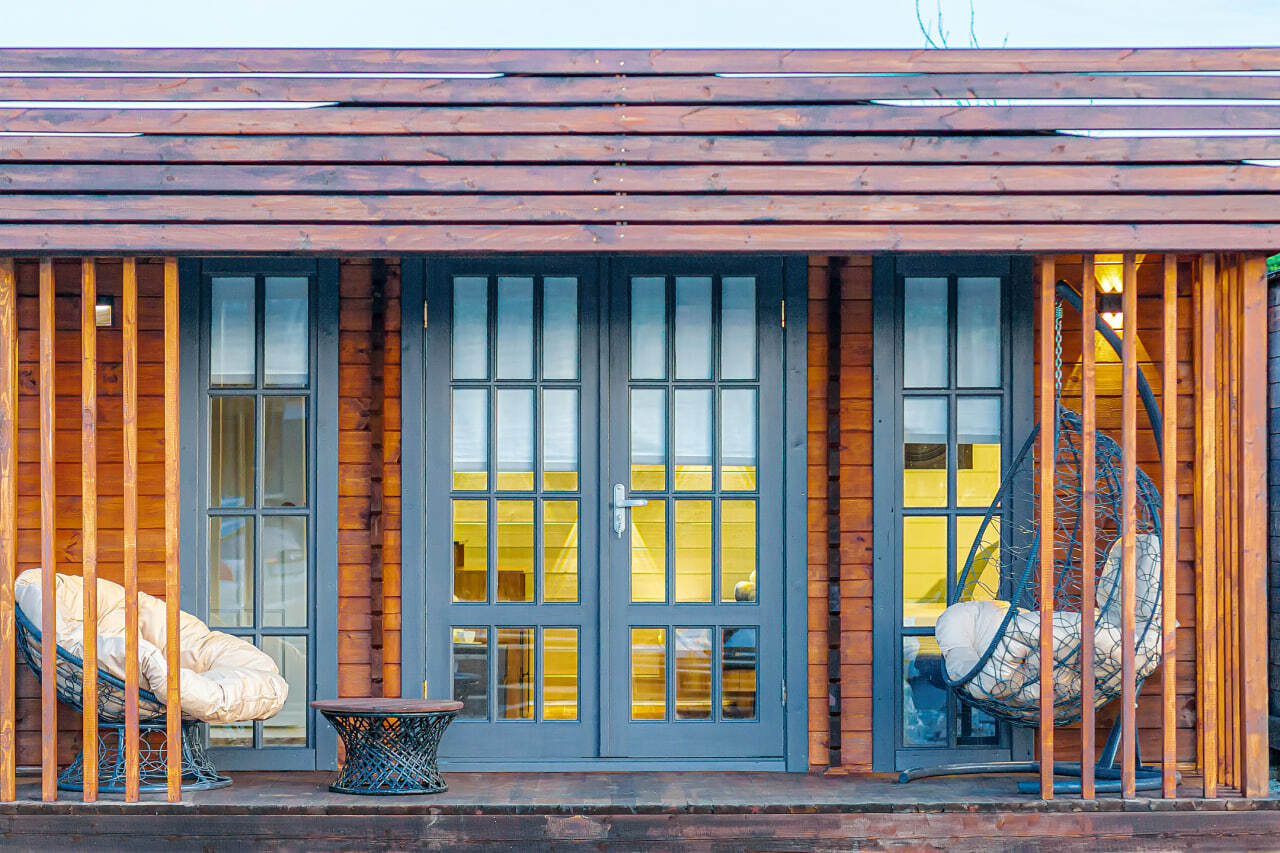 Однокомнатный экодом с прихожей, спальней и меблированной террасой. В комплектации двуспальная кровать, диван-кровать, прикроватные тумбочки, шкаф, зеркало, пуф. В числе удобств — Wi-Fi, телевизор, сейф, чайная станция, кондиционер и холодильник. Ванная комната с душем, феном и туалетно-косметическими принадлежностями.