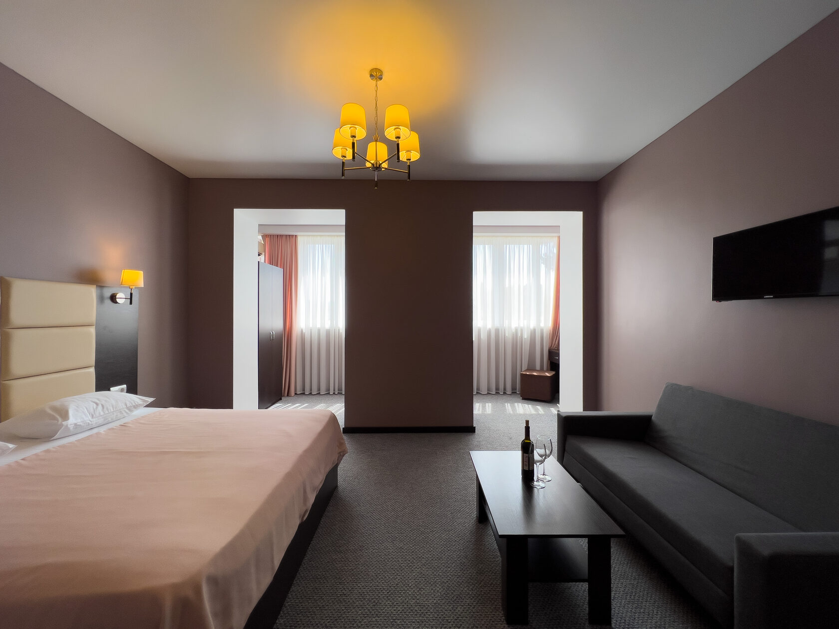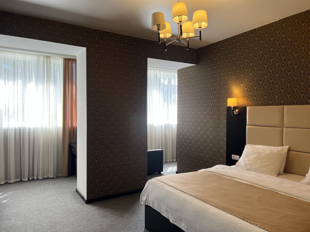 Написано 4 звезды - по факту судите сами. Все хорошие отзывы - походу куплены. Ну и странно, что не один хороших отзыв об этом отеле не говорит например о КОРАБЛЕ с дискотекой под окнами…. Или о том как люди прут свои чемоданы на 4 этаж потому что нет лифта. А кстати в 4 звездах лифт быть обязан. И о многих др минусах. Ну давайте по фактам… Еда. Максимально однообразная хоть и шведский. Гарниры ужин и завтрак одинаковые. Вкусная только выпечка. Ребенка кормить нечем. Все острое. Как можно делать острым курицу которую едят большинство. Не понимаю. Макароны переваренные в кашу - ну как так то? Пюре на воде. Кошмар. Самая дешовая столовка. Смешно то что нельзя зайти кушать с большой сумкой. Типа что бы не выносили еду. Что я могу вынести от туда только не поняла. Печенье ? Или что? Ресторана в отеле нет. Еду заказать нормалью негде. Кофе хорошо с собой привезли заварное. Кофемашины в баре нет. Только ресепшен почему то не знает об этом. Номер. Хороший вроде. Чисто. Первый день в туалете был запах мочи. Проблему даже не пытались решить сотрудники. Потом прошел слава богу. Не пришлось скандал поднимать. Сотрудники! - Если обычно в хороших отелях самые незаметные это персонал и горничные, то здесь все наоборот. Шумные кавказские женщины орут на этаже так что кажется лежат с тобой в кровати ( слышимость сильная) а когда выходишь делать замечание говорят - цитата : а что вы хотите- вы на Кавказ приехали. Хотя я приехала не в аул, а в отель где хочу видеть сервис. Или ситуация с уборкой, когда заходят в номер и говорят : (цитата) ой да тут чисто. Или ситуация. ПРОШУ ОБРАТИТЬ ВНИМАНИЕ РУКОВОДСТВО. . 19 сентября. 8:40 ( если нужно смотрите камеры) на ресепшен я задаю вопросы девушке сюр цене проживания. Она просто отказывается отвечать и пока я говорю ей что то ОТВОРАЧИВАЕТСЯ к другим людям и спрашивает какой вопрос у них. Такое не уважение. Кошмар. Ну и мое любое - КОРАБЛЬ С ДИСКОТЕКОЙ. все окна отела выходят на него. А так как отель на первой линии - все веселятся. До 1-3 ночи орет музыка потом салют. Окна не откроешь. Никакого свежего воздуха. Сказка. И все это за 60 тыс 4 дня. Пусть мой отзыв спасет ваш отдых. Потому что мы повелись на хорошие отзывы походу о написанные всеми сотрудниками по приказу.