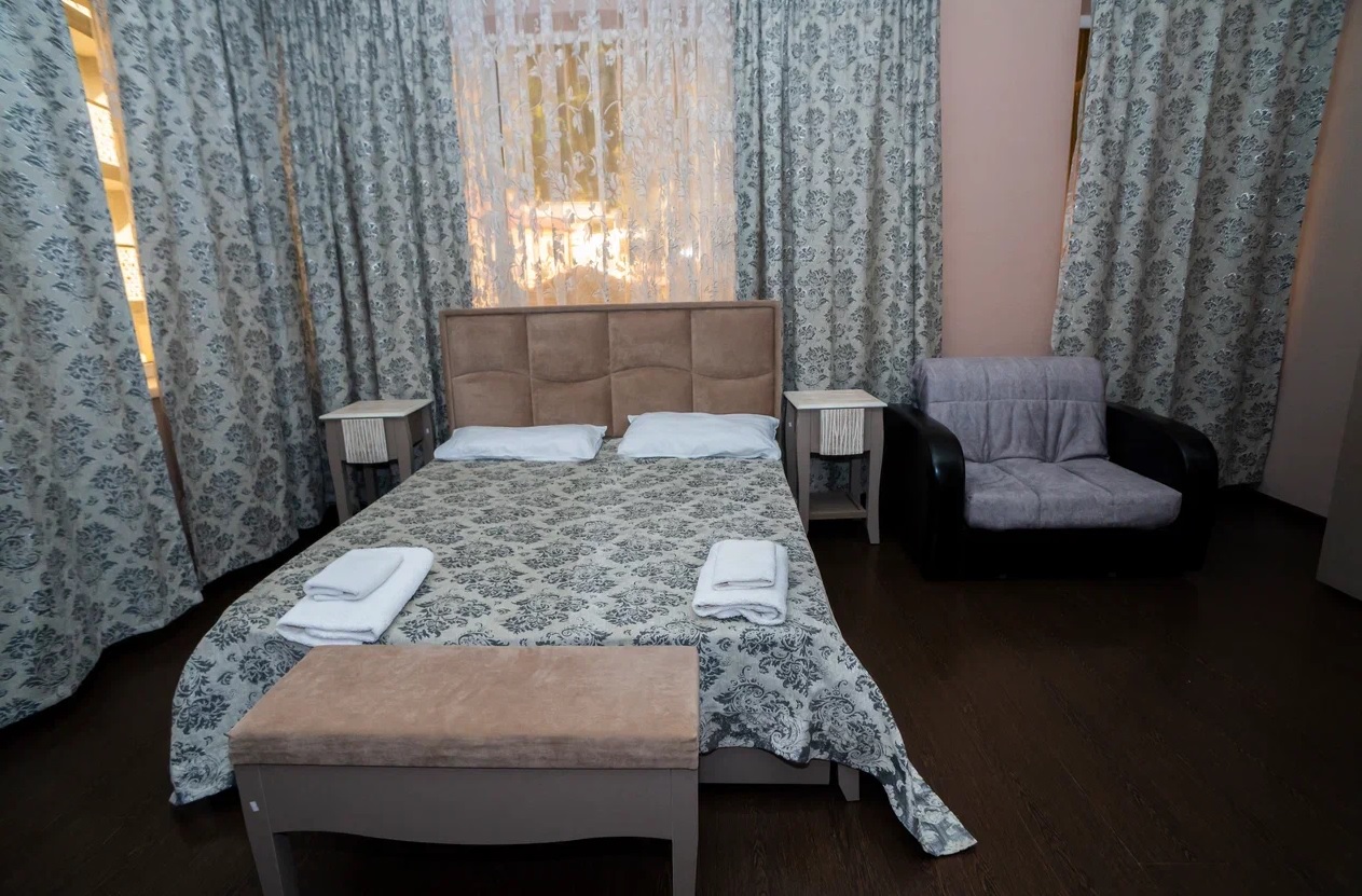 Ещё большая благодарность обслуживающему персоналу, девушка , которая убирала в номерах всегда делала всё быстро и качественно. Мы даже иногда просили не убирать, так как всё чисто. Но приходили в номер и было приятно что мусор вынесен из ванной, раковина и коврик почищены, полы помыты. Хотя мы переживали что доставляем неудобства в плане уборки нашим сборищем природных материалов в номере))). У нас сын приносил ракушки, камни, шишки пихты, кедра,всякие коряги. Все это у нас лежало в номере на поребрике-плинтусе , огромная коллекция. В последний наш день мы конечно от большинства избавились, взяли только самые красивые и памятные, а то нас бы не пропустили через границу за вывоз природного материала из Абхазии)))))