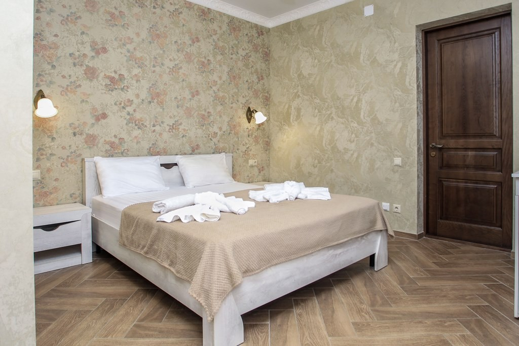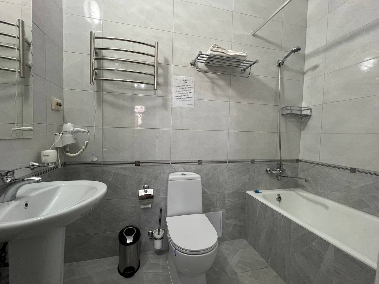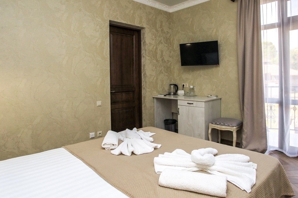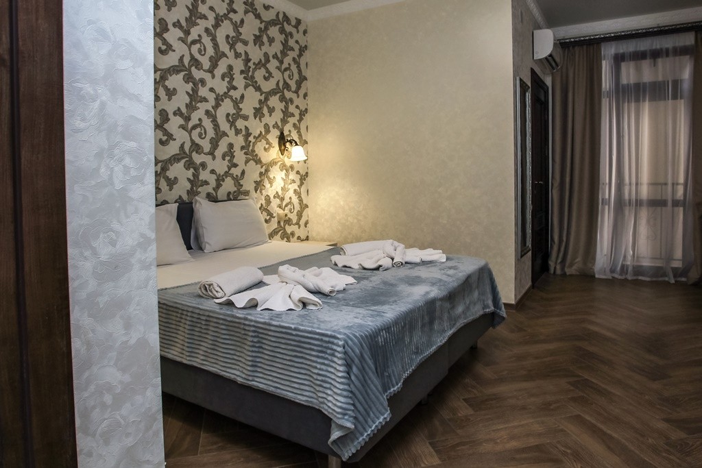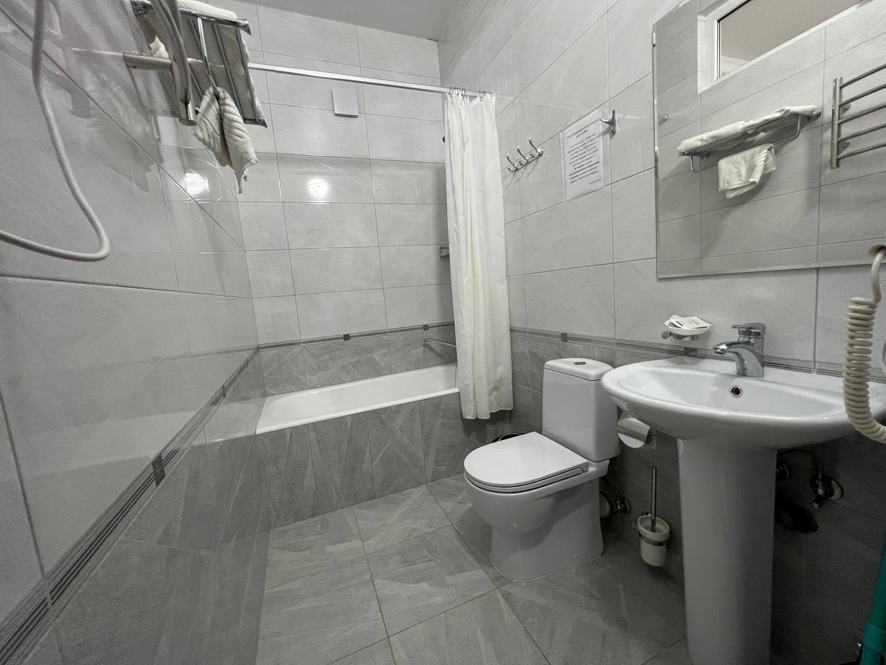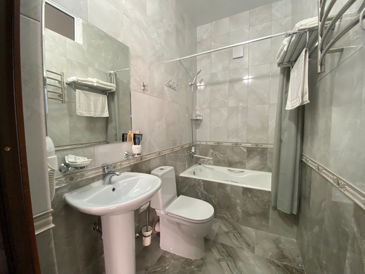 Комплектация номера включает двуспальную кровать/2 односпальные кровати, письменный стол, кондиционер, телевизор, мини-холодильник. В числе прочих удобств Wi-Fi, набор для приготовления чая и кофе. Ванная комната с душем/ванной, феном, набором гостиничной косметики, тапочками и халатом.