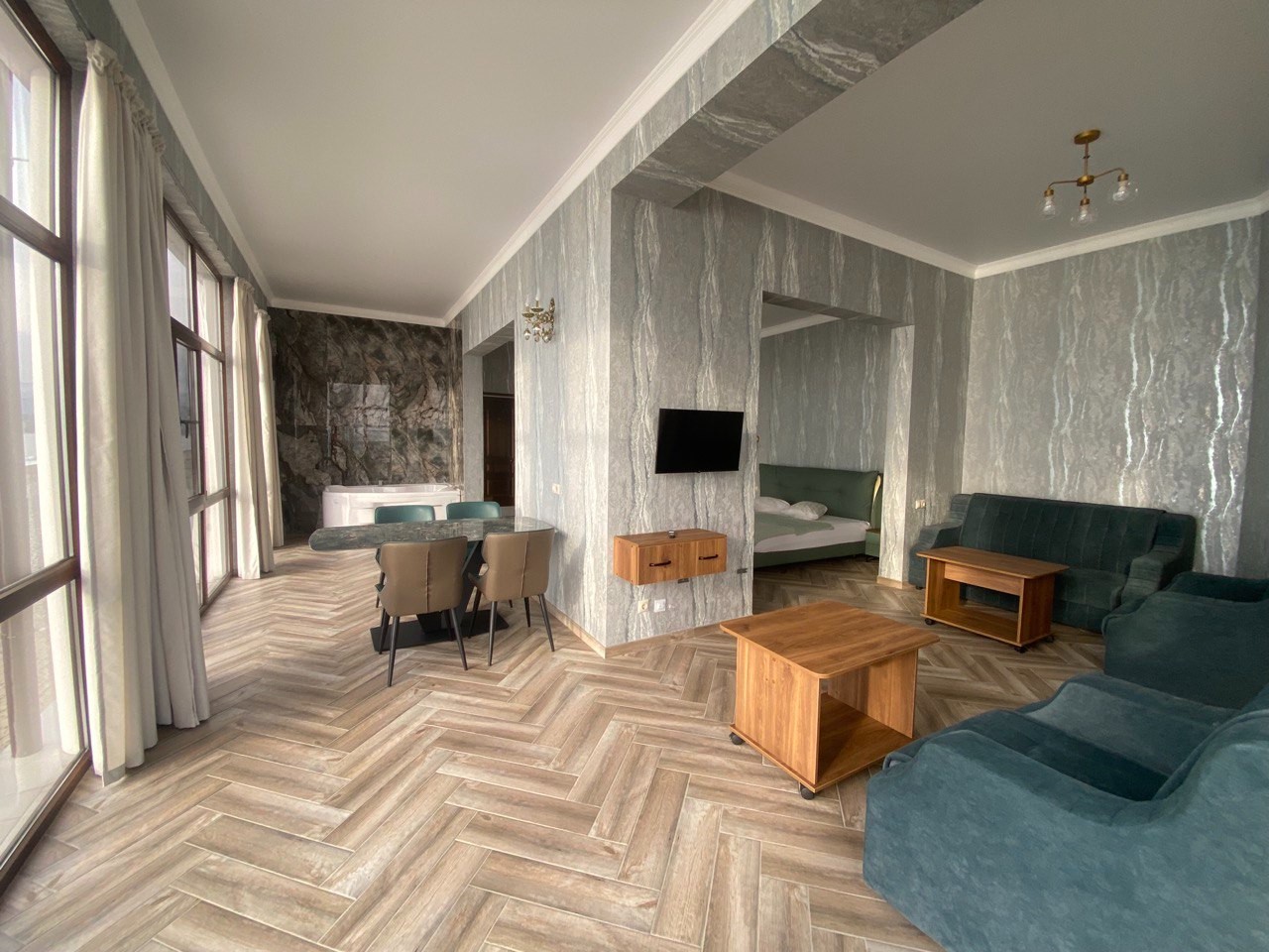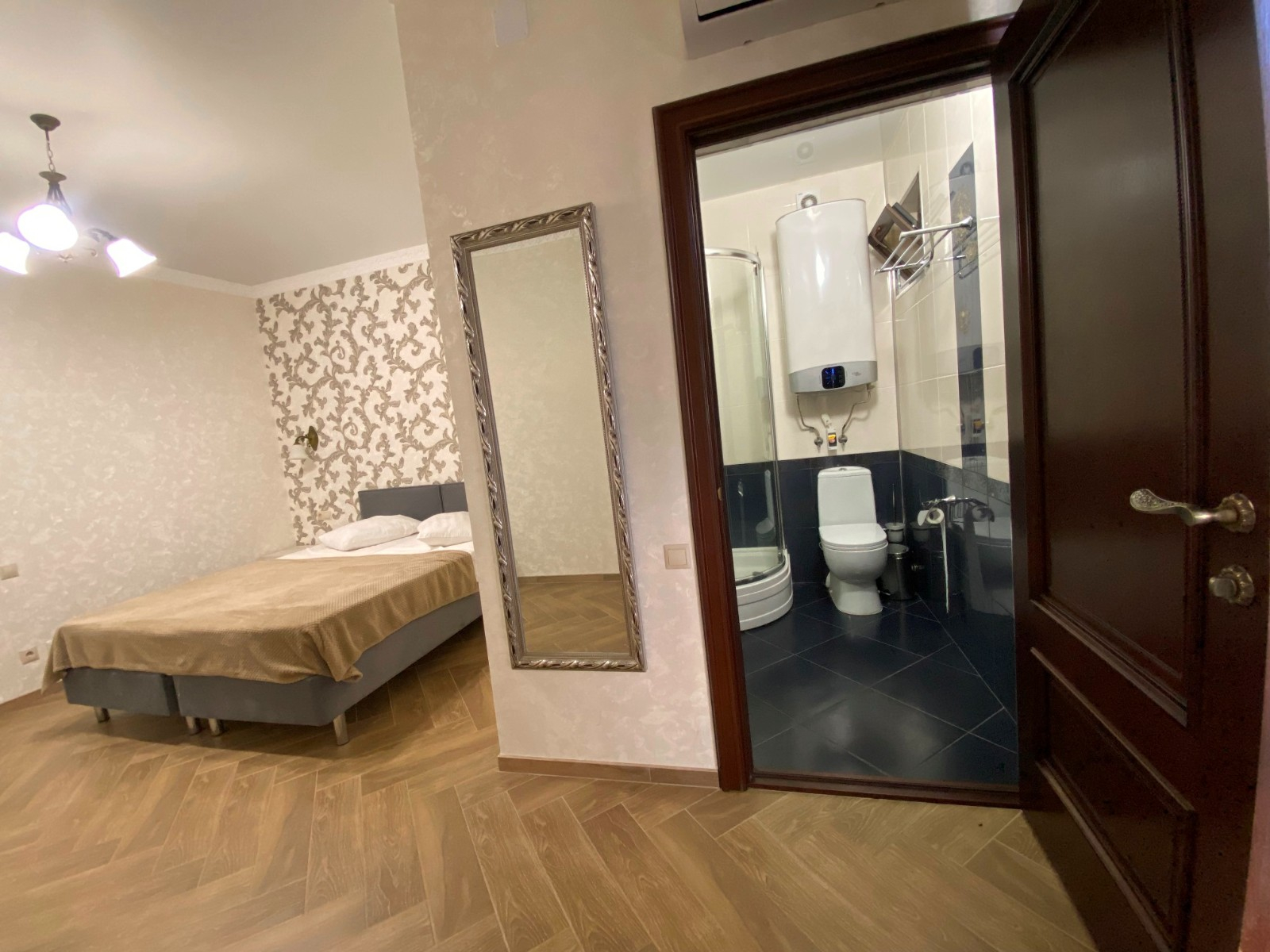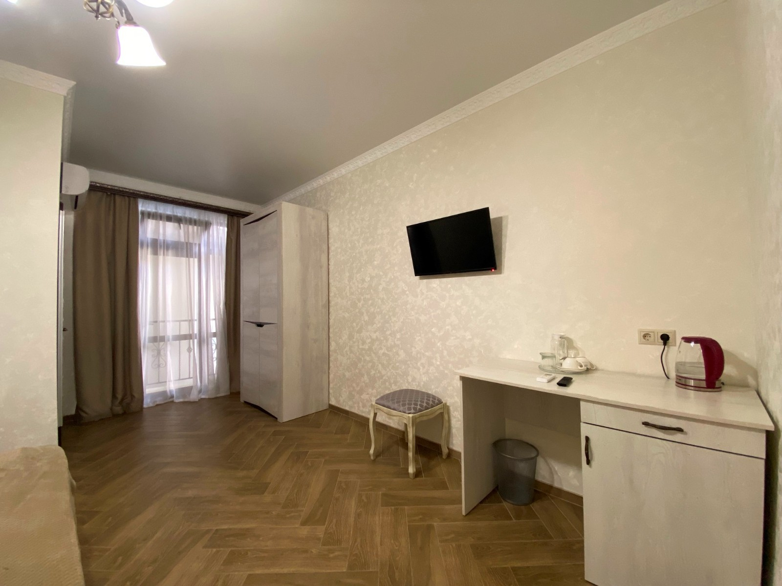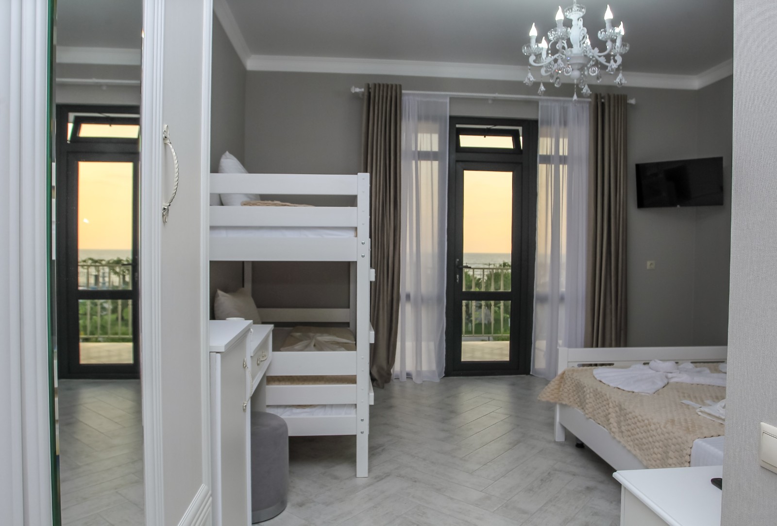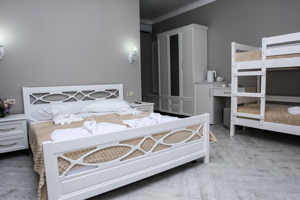 Однокомнатный семейный номер укомплектован двуспальной и двухъярусной кроватями, беспроводным интернетом, кондиционером, телевизором, мини-холодильником, чайником. В ванной комнате душ/ванна, туалетные принадлежности, фен, халат и тапочки.