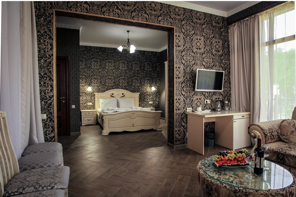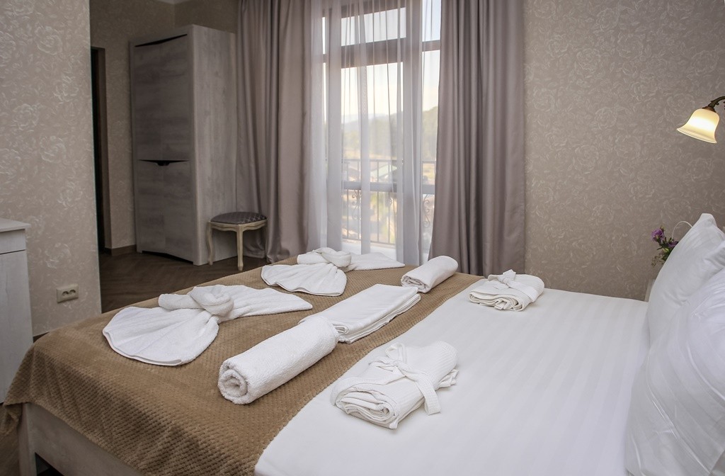 В комплектации номера двуспальная кровать или две односпальные кровати, рабочее место, балкон, Wi-Fi, телевизор, кондиционер, мини-бар/холодильник, чайная станция. Ванная комната с душем/ванной, феном, тапочками, халатами, туалетно-косметическими принадлежностями.