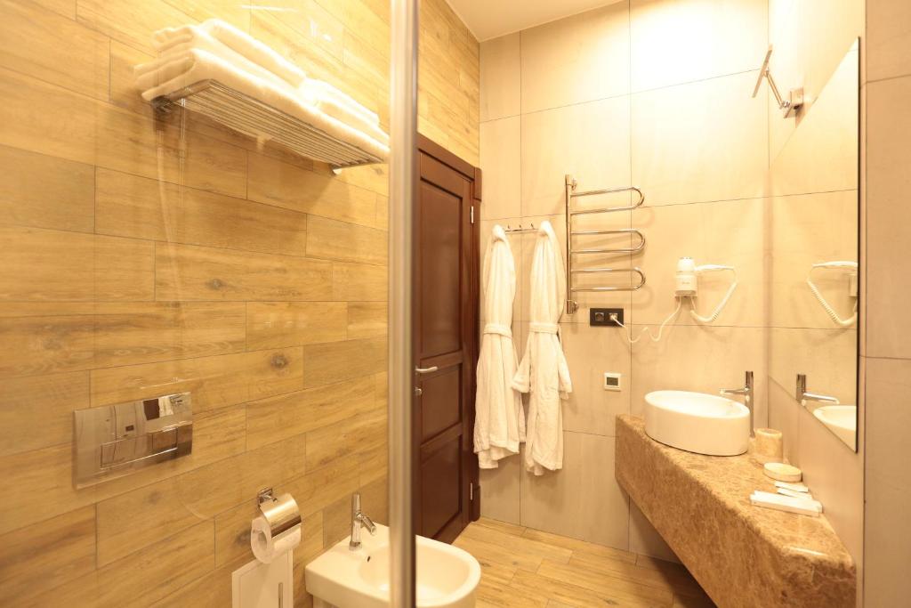 Прекрасный новый отель, просто с шикарными удобными, большими номерами. На территории много интересного: подогреваемый чистый бассейн, сауна, лаунж зоны, бильярдный стол самого Сталина, бар и многое другое. Отдельное внимание заслуживают завтраки, очень вкусные, разнообразные, сытные, и мы с детьми всегда ждали что же сегодня!? Приветливый персонал, поможет решить любой вопрос, сервис очень впечатлил своим уровнем! В общем все круто, спасибо за Прекрасный отдых, вернемся обязательно!