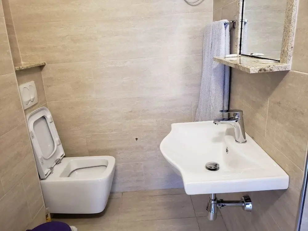 Мы заплатили 35 € за ночь, и цена не оправдывала комфорта и удобств. В этом отеле нет зоны парковки, но дама сказала нам, что мы можем припарковаться на улице. Не профессионально. Мы заказали для вида на море, но все, что мы видели, это гора и национальная дорога. Сотрудники после взяли деньги, исчезли. Ванна была такой маленькой, что вы не могли даже сделать душ нормально, и не было полотенца. Конечно, я не собираюсь туда снова. Я не рекомендую это делать. Затем пришел завтрак. Дама, которая служила там, была груба и не спрашивала нас, что нам хотелось бы. Принесли нам крокус и масло, которое исчезло на тарелке, потому что было жарко. Мы встали и ушли без еды. Вы, ребята, оказываете себе одолжение и никогда туда не попадаете.