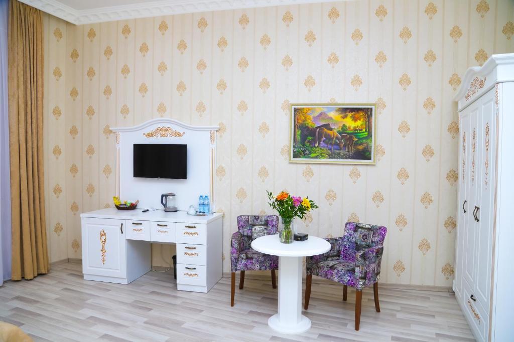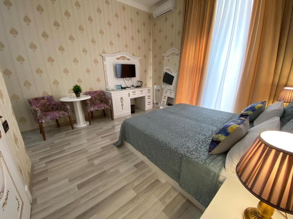 Во-первых, имейте в виду, что это очень «бутик» отель, около 2-го этажа в здании на главной площади Фонтанов, есть несколько очень хорошо оборудованных номеров. Это больше похоже на аренду высококлассной квартиры, хотя вы получаете собственную комнату и круглосуточный ресепшн. Номера большие и оформлены в приятном стиле «олигарх шик». Из-за расположения отеля нет никаких удобств как таковых. Вы завтракаете в одном из самых модных кафе Баку. Завтрак включен в стоимость большинства номеров, но вам придется платить за кофе, и по стандартам Баку цена на кофе очень высокая. Обслуживание может быть немного медленным, но оно на высоком уровне. Расположение отличное - 30 секунд до Площади фонтанов, где великие и добрые из Баку выходят на прогулку вечером. Несмотря на суету внизу, номера тихие благодаря хорошим окнам. Возможно, вы захотите взять с собой затычки для ушей, чтобы справиться с шумом разговоров гостей на стойке регистрации. Никто не понижает их голос в любое время, и когда это 7 часов утра, это совершенно неприемлемо и является основным недостатком небольшого отеля, расположенного в жилом здании. Персонал говорит по-английски и очень дружелюбный. Вы можете заказать экскурсии, если хотите. Последнее слово о местоположении - если вы полагаетесь на карты Google, вы не найдете этот отель. Ищите ресторан под названием «Пассаж», и он находится по соседству. Следование указаниям по картографическим приложениям оставит вас в нескольких сотнях метров и очень расстроен. Водители такси не могут высадить вас на улице, так как это пешеходная улица.