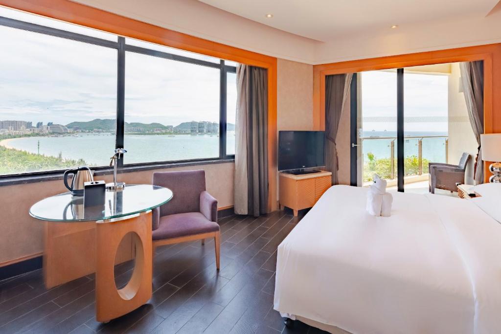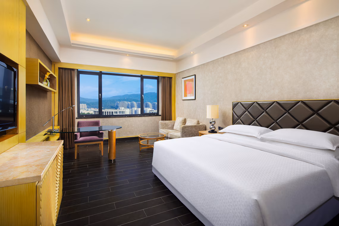Ожидали большего от известной сети. Очевидно, что отель нуждается в реновации или, хотя бы, генеральной уборке. Городской отель, удобное месторасположение. можно прогуляться вокруг, пляж через дорогу, но не оборудован вообще ничем, ни одного шезлонга или зонта там нет. Территории у отеля практически нет, есть небольшой закуток с бассейном и шезлонгами. Бассейны детский и взрослый, хлоркой не пахнет. Тут же выдаются пляжные полотенца и надувные круги. Сами здание видно, что не ремонтировалось с момента открытия в 2012. В фонтане на въезде ржавая оранжевая вода. Фасад грязный, местами облупленный. Лобби просторное на два этажа, на второй этаж можно подняться на лифте или эскалаторе. На первом этаже какое-то подобие магазинов с высокими ценами. И ни одного диванчика, чтобы подождать такси или трансфер куда-то. С 1го по 5ый этаже места общего пользования, с 6го по 29ый - номера с видом на море, либо на город. Ранее тут писали про стройку рядом, спешу сообщить, что она закончилась, ведутся только мелкие отделочные работы внутри отельчика рядом, шума уже нет. Прилетели в 2 ночи, пришлось доплатить 500 юаней за раннее заселение, хорошо, что были свободные номера. Нам достался на 11 этаже. Первое, что замечаешь старые грязные вонючие ковролиновые полы в коридорах. Ковролин, видимо, не чистили со времён постройки. Номера просторные, две широкие кровати, хорошие матрасы и подушки. Стол, стул, старый просиженный диван в катышках. Также есть телевизор. На полу плитка. В санузле есть и ванная, и душевая с лейкой на гибком шланге и тропическим душем на потолке, большая раковина и унитаз. Душевая кабина протекает по периметру каждый раз при использовании. На столешнице раковины огромное известковое пятно. Также в ванной находится отверстие вентиляции, из которого каждый день в номер в большом количестве проникают запахи кухни отеля, а также чей-то табачный дым, хотя мы писали в пожеланиях, что некурящие. Есть шкаф с плечиками, гладильной доской и утюгом, также вафельные халаты, тапочки для номера, и шлепки для пляжа. Есть одноразовые наборы щеток с зубной пастой, расчесок, ватных палочек и пилочек. В номере есть небольшой холодильник, чайник, две кружки, чайные и кофейные пакеты, также вода в бутылках. Белье на постель может остаться целое, а может и с заштопанными дырками. Самая большая проблемы в номере, кроме запахов, это мебель из твердых пород дерева и звук, который она издает при движении по полу из плитки. Звук очень громкий и противный. Первые два дня над нами никто не жил, было тихо. Дальше начался ад. Заехала какая-то ненормальная, которая двигала мебель каждые пять минут и днём, и ночью. Находиться в номере было невозможно. Также она в пять утра в один из дней ходила по номеру на каблуках. сотрудник отеля на ресепшене при обращении сказал нам, что ничем не может помочь. Через пару дней обратились снова с этой проблемой, сотрудница уже женского пола предложила нас переселить, и предупредила, что этот посетитель съезжает. Действительно, так ненормальная съехала, следующий постоялец уже двигал мебель меньше. Но столько ужасного звука от двиганья мебели я не слышала ни в одном отеле. Почему нельзя одеть на ножки мебели чехлы с накладкой из войлока или пробки, чтобы не было этого ужасного звука? Их же в Китае и производят. Почему я должна бегать и упрашивать персона