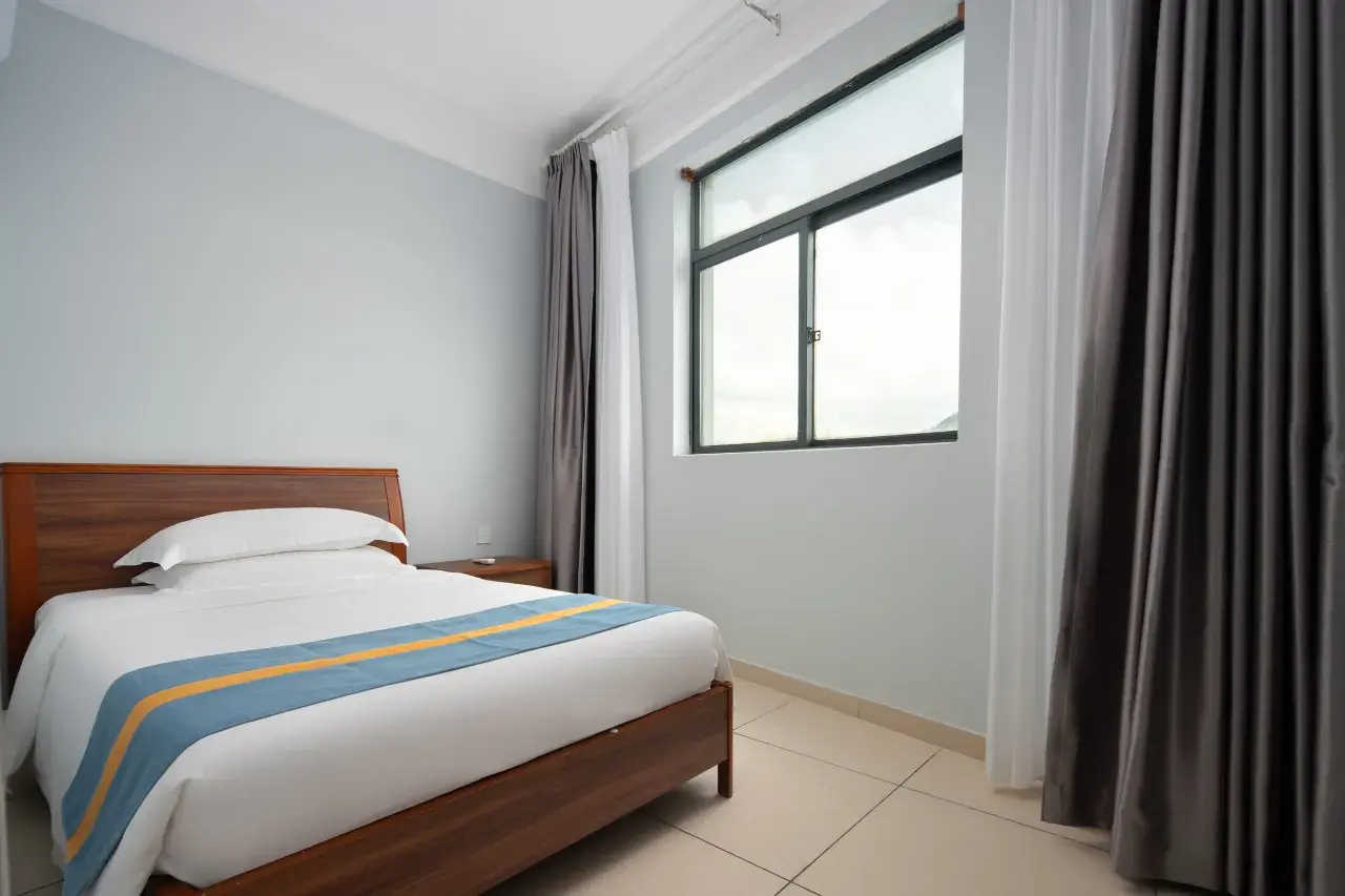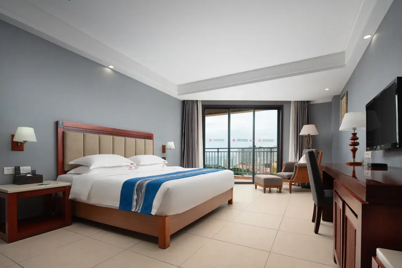 Однокомнатный номер с балконом, спальней, ванной комнатой с ванной. Для размещения предлагается двуспальная кровать или две односпальные кровати. В числе удобств телевизор, кондиционер, телефон, сейф, холодильник, фен, тапочки, набор для приготовления чая и кофе, беспроводной Интернет. Из окна открывается вид на горы.
