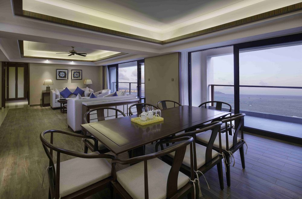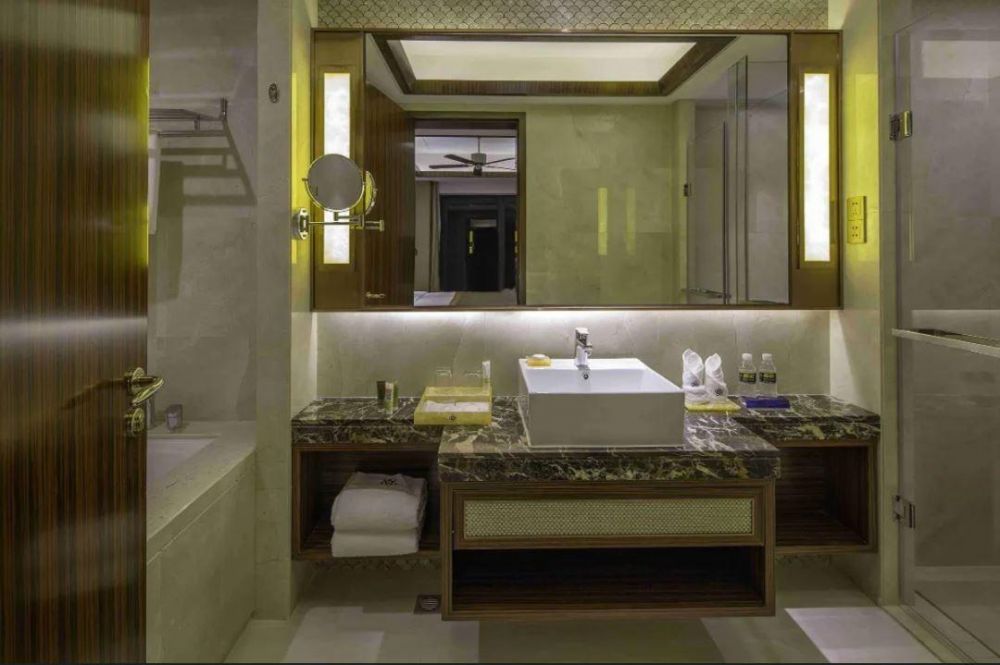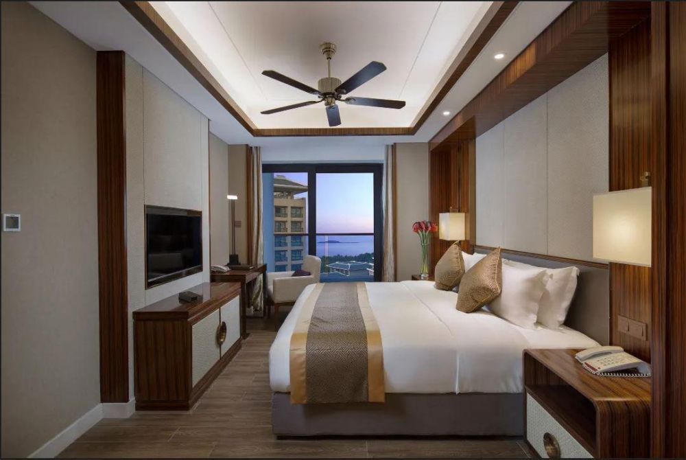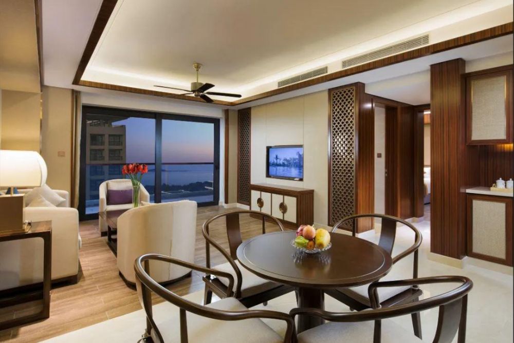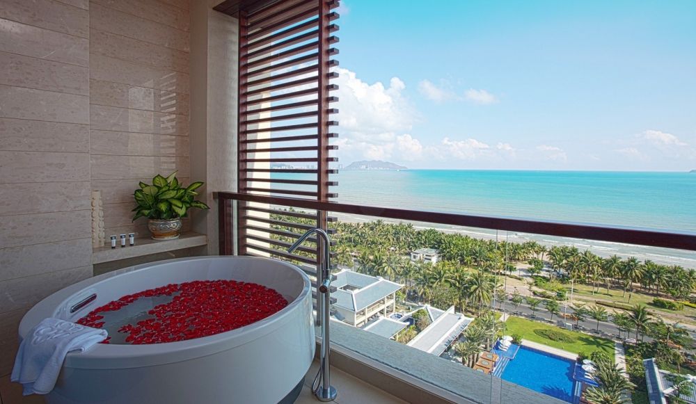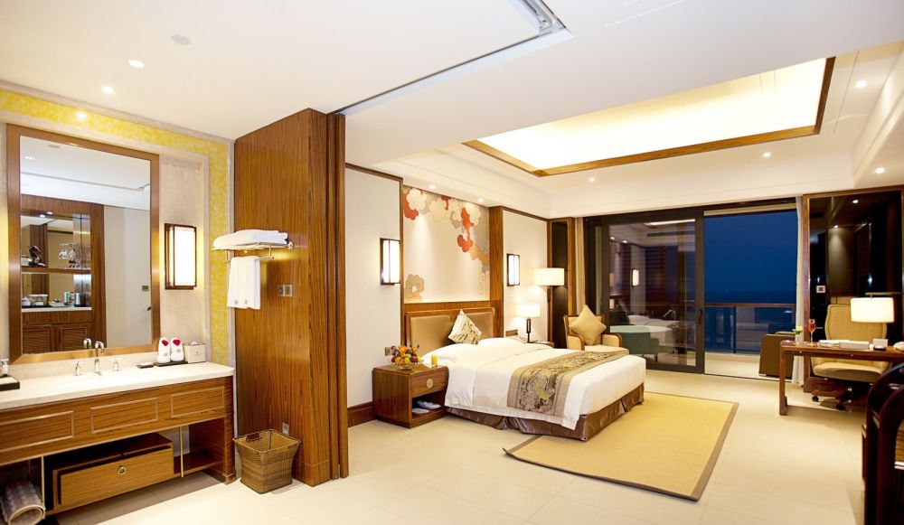 Отмечу, что сейчас отель носит название Jinghai Hotel&Resort5*. Отель на все свои 5*, расположен в бухте Санья Бэй на пляжной линии Coconut beech. Пляж 50м через дорогу, где дежурит полицейский и помогает перейти, если лень пройти до перехода 50м ))))). Отель новый, номера шикарные, у нас был Deluxe на 11м этаже 1105. Этажи 9,10,11,12 - VIP с отдельным лифтом, который на нижние этажи не ездит. В номере телевизор Samsung плоский, kingsize(2x2.2) кровать с белоснежным новым бельём, которое меняют минимум раз в два дня, холодильник, сейф, гладильная доска, утюг, чайный уголок с чаем, фарфоровой посудой, чайником и пополняемой каждый день водичкой 2x0.33l. Территория отеля зелёная, ухоженная, с огромным подогреваемым бассейном с тремя глубинами детский лягушатник. Постоянно дежурят два спасателя. Есть душ для того чтобы обмыться, купальня для ног(удобно придя с пляжа обмыть ноги), переодевалки(5шт) Вокруг бассейна плетения мебель(столы стулья) В лобби всегда рады помочь Всем о чем попросите, очень радушный и приятный персонал, две девочки разговаривают на русском и английском(чтотредко для Саньи). По всему отелю отличный скоростной WiFi, сервисы Google, месенджеры(кроме WhatsApp)не работают, только через VPN, который поставить и активировать лучше дома. Питание: мы брали только завтраки, т.к весь день до позднего вечера в отеле нас практически никогда небыло. Шведский стол обширен, с массой национальной кухни, но и наличием привычных сосисок и колбас. Отдельно свежесваренные пельмешки и лапша. Яичница. Различные салаты, водоросли, овощи и т.д. выпечка, булочки, даже пироженки. Сладкие напитки типа юппи, кокосовое молоко, чай кофе, тонизирующая водичка с лаймом. Всегда есть что выбрать и скушать. Приходить лучше раньше, т к китайцы проворные ребята и в 9.00 уже не будет половины вкусных блюд. Мы ходили к 8ми. Рядом с отелем остановки, если смотреть со стороны отеля, то влево на противоположной стороне дороги автобус 8,25,26 - идут на главные туристические места(пешеходная улица, первый рынок, подземный город, в котором кстати два этажа по 2км каждый магазинов "от болта до самолёта") улица еды и т.д Вправо, на стороне отеля на 26м автобусе - парк Няньшань до конечной, цена 8юаней/чел. Сдачу в автобусе не дают, берите мелкие деньги заранее. Впечатления от Саньи и отдыха - мегакрутые, немного подпортили общую картину гиды от ЭдемТревел Роман и МиньСинь - абсолютно бесполезные, алчные существа, выманить которых в отель можно было лишь написав в вичате, хотим купить экскурсию по вашей американской цене. Единственный человек из Эдем тревел оставивший неизгладимо - позитивные эмоции, гид Соня, которая ездила с нами в ЯнодаПарк. Человек ради туристов работает на износ, любые вопросы, пожелания выполняет молниеносно, собранно руководит группой, собирает потеряшек, её можно узнать по розовому фламинго на палочке, так человек креативно выделяется для туристов своей группы от десятков других гидов. Писать можно бесконечно - пример гида для аморфов, типа Ромы и МиньСинь, которых я видел в отеле 1 раз, хотя и писал что срочно нужна помощь в одном неприятном моменте.