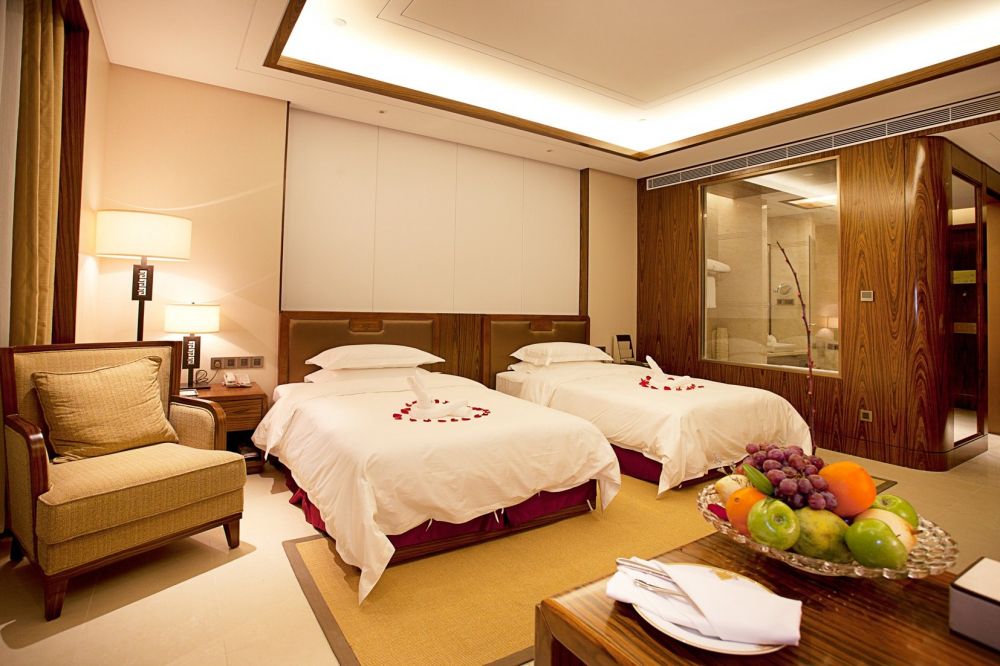 В Санью прилетели впервые,отель выбирали по цене - за двоих с перелетом из Киева с завтраками, трансфером и страховкой - это удовольствие стоило 802 доллара за 11 дней !!!!! Что значит цена на "черную пятницу"!!! За такую цену я ожидала увидеть нечто очень средненькое и вдруг такой сюрприз. Отель сейчас называется Jinghai Hotel&Resort5*. Он новый и находится на первой линии через дорогу от пляжа. При заселении берут депозит 100 дол. Номер стандарт большой,но без балкона,есть такой выступ загороженный , но думаю что сушить купальник не удобно. В номере -гладильная доска, утюг,сейф, фен,чайник .Каждый день пополняли шампунь,гель,зубные щетки с пастой, а так же чай,кофе. Ванная комната большая, кроме душевой кабины есть и сама ванна. Завтраки обильные и разнообразные - очень очень много различных овощей , бульоны с лапшой, маленькими "пельмешками", несколько видов кокосового молока,соки и конечно яичница. Кофе так себе, пироженки четырех -пяти видов малюсенькие - не пробовала. Все очень съедобно. Да. За 11 дней 4 ( четыре) раза меняли постельное белье!! Полотенца - каждый день. Все было очень чисто.