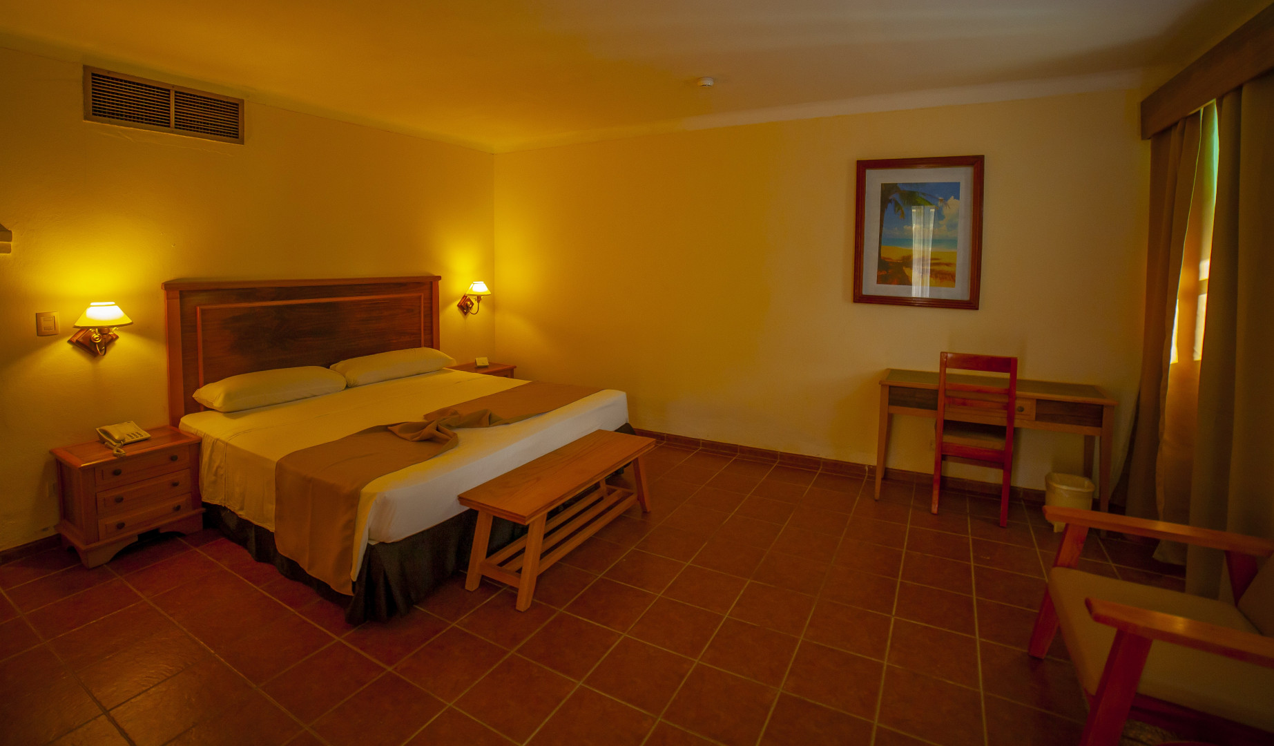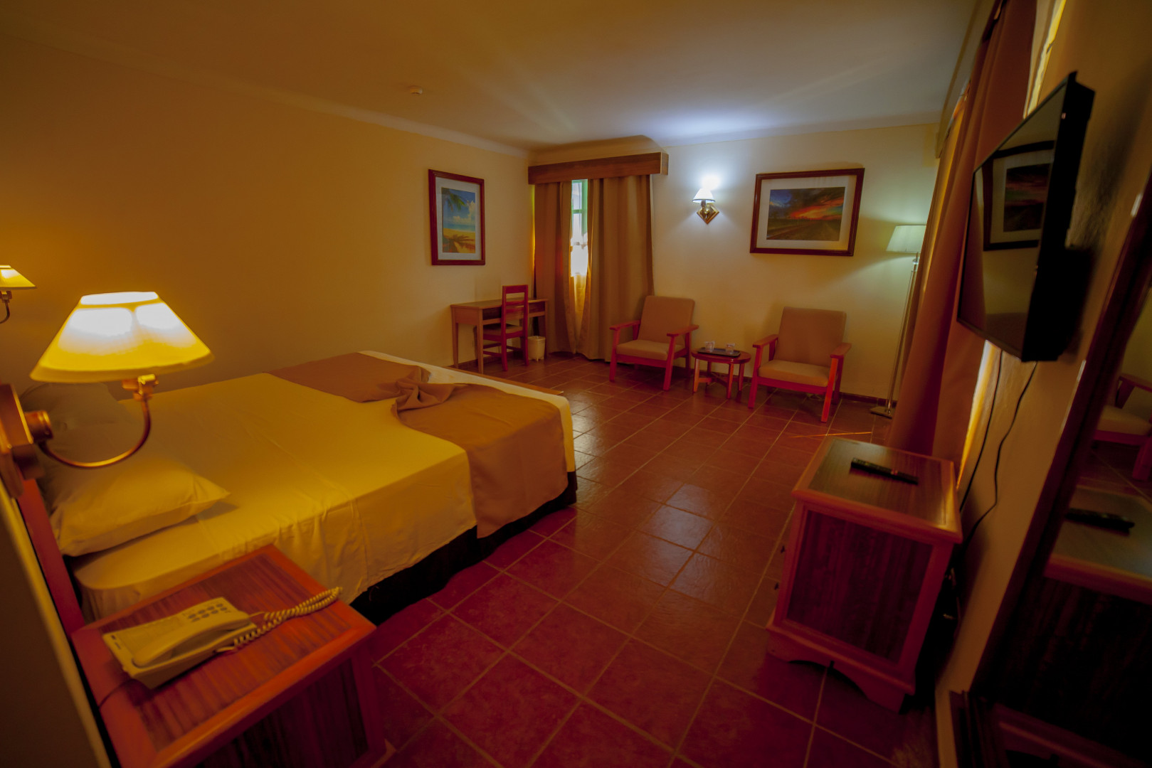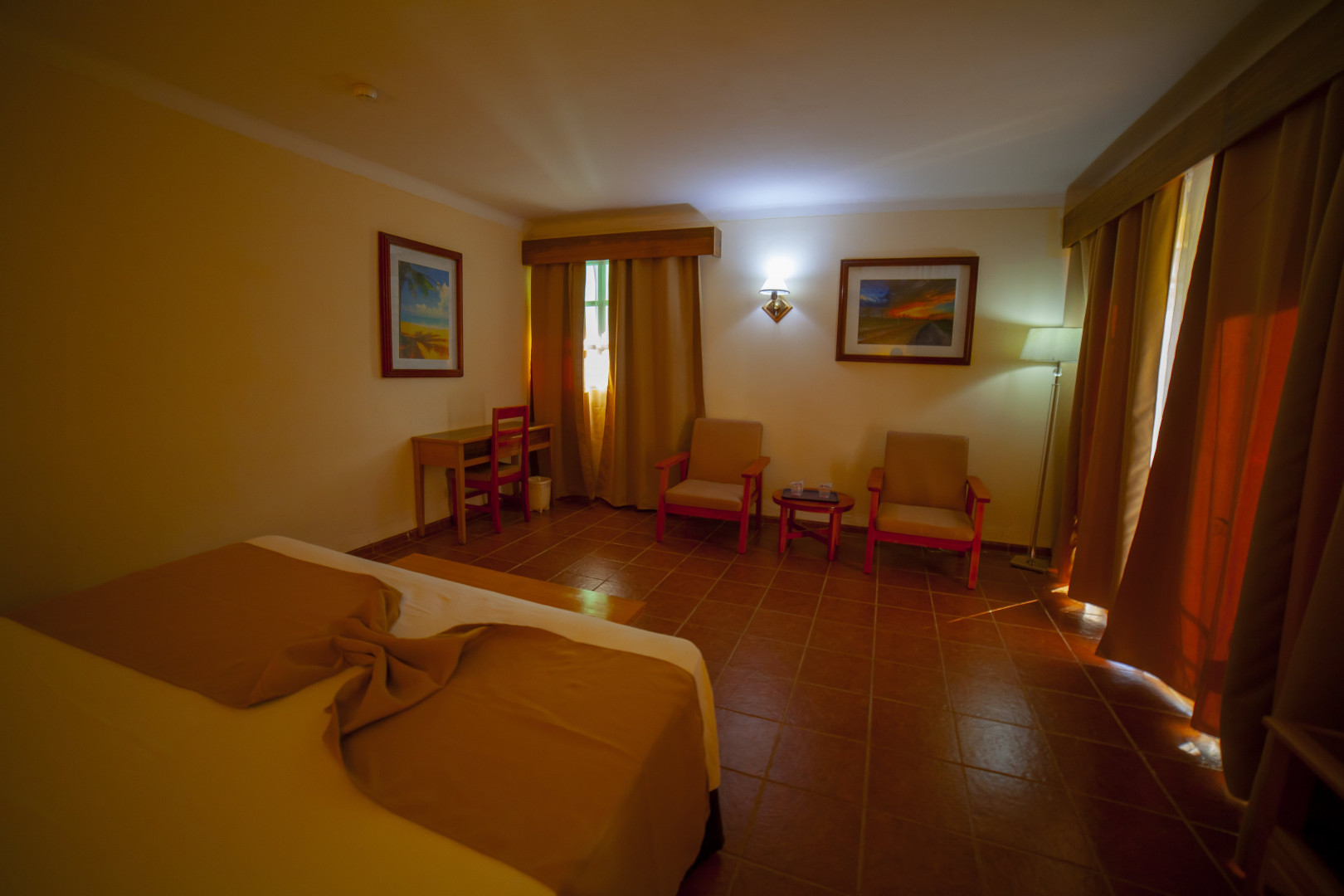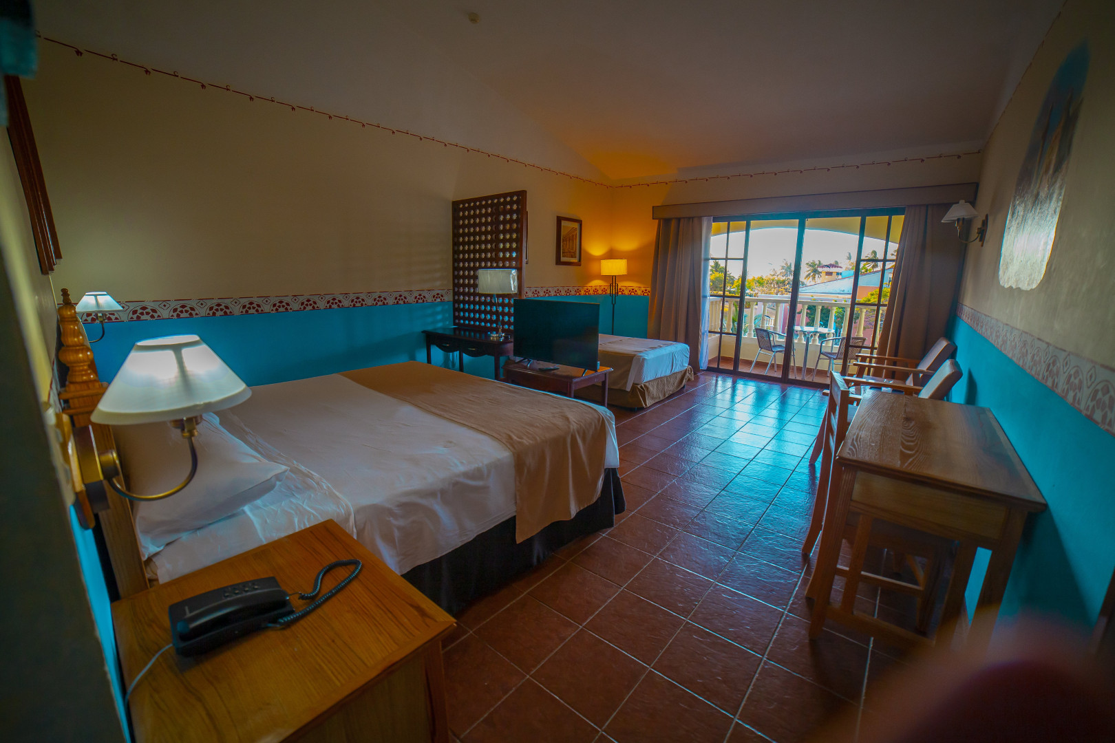 На осенних каникулах в пятером 2018 Отличный отель! Выбирали специально океан! Вылет из Шереметьево, на борту с туристами летели Кубинцы. Полёт 11 часов, пролетали Ноовегию, Гринландию, Канаду, США, виды были неописуемые, от снежной фьордов до райских Баунти видов. Приземление в Ольгин, t - 32*, сухо знойно. До отеля в Гуардалаваке автобусом чуть больше часа с рассказами и наставлениями гида, которого видели за весь отдых 2 раза. На ресепшен встретили с коктелями и танцами, посидели около 30мин. Предварительно делали через tophotels.ru заявку и распечатали приглашение для заселения от отеля, в результате заселились в 2 номера на первом этаже 3х этажной виллы. Чистый номер, ЖК тел, ванная и туалет, 2 кровати (в каждом), кондей, сейф, стулья со столиком, комод, шкаф для одежды. Слегка покоцанный интерьер в Кубинском стиле, но всё рабочее. Номера убирали хорошо и без чаевых, но мы оставляли в основном подарки(русский шоколад, крема для рук и т.п.). Пляж, основной приоритет при выборе отдыха оправдал себя на 100%, белый песок, местами каменные косы, голубой океан, вода 27*, шезлонги, солнцезащитные зонты из тростника, вечно поющие птицы, бегающие ящерицы, разнообразные рыбки, морские ежи если заплывать дальше от берега (конечно не как в Египте, но достаточно), берите маски с трубкой не пожалеете. Еда на Кубе своя, но в чём-то схожа с нашей. Очень много жареного мясо разное, колбасы разные, рыба, выпечка, десерты, мороженое (изобилие разных вкусов), фрукты есть, но не как во Вьетнаме, отдельно СОКИ свежие , видов 5-6, в неограниченном количестве. РОМ во всех барах. Голодными не останетесь. Развлечения в основном у главного корпуса, у бассейна постоянно. Очень много Канадцев. Вечером у основного ресторана живая музыка, танцы, шоу каждый день. Экскурсии брали прогулку на катамаране с погружением в открытом океане и заходом в дельфинарий. И поездка в Сантьяго де Куба. Всё круто. Только надо с собой брать воду, очень жарко, постоянно передвижения на ногах очень утомительно. Остерегайтесь местных которые навязывают помощь в городе, всё это не бесплатно, развод. Ретро тачки особый разговор, полно всяких и из США, и из СССР. Катались на велосипедах, байдарках, катамаранах - всё бесплатно. Сувениры на уровне поделок на уроках труда и всё в этом духе, Чегевара, Фидель, РОМ везде, СИГАР полно, кофе отличный, какао хоть Испанское, но очень вкусное. Цены как в СССР везде одни. С собой вези лучше ЕВРО. Обмен в отеле у ресепшен в окошечке, примерно 1:1,1 ЕВ/Песо Конвертабле для туристов. Для местных валюта своя. Интернет 10ев., но ловит только у ресепшен. Очень много положительного и интересного на Кубе, незабываемый отдых. Кубинцы не богаты, но патриоты своей страны: Куба, Свобода, Фидель.