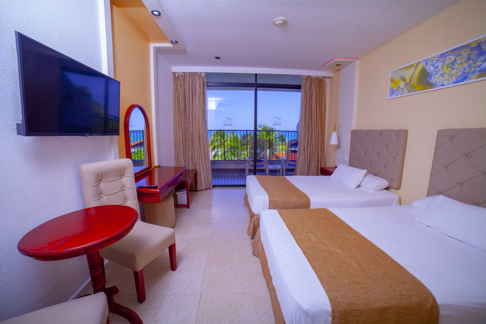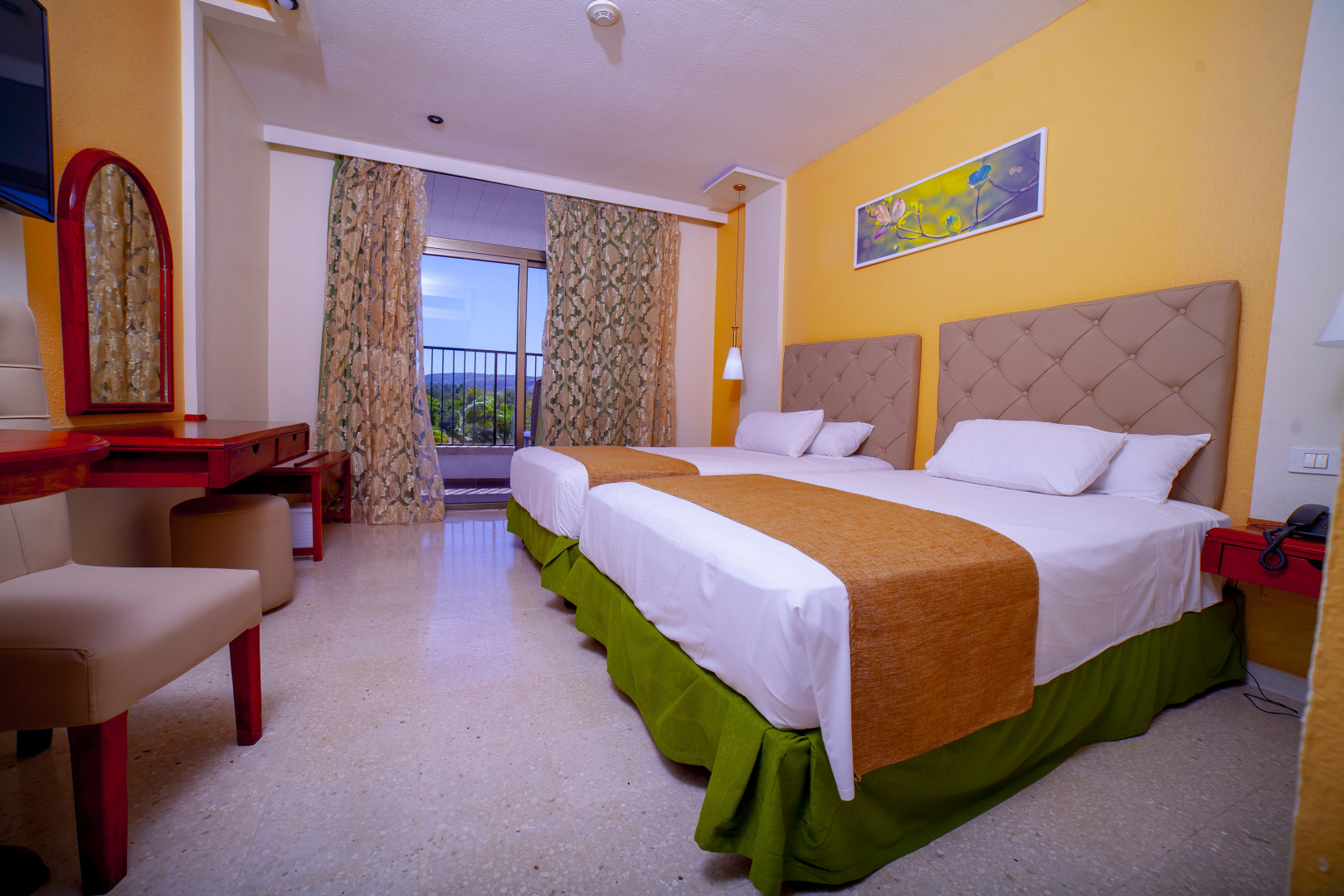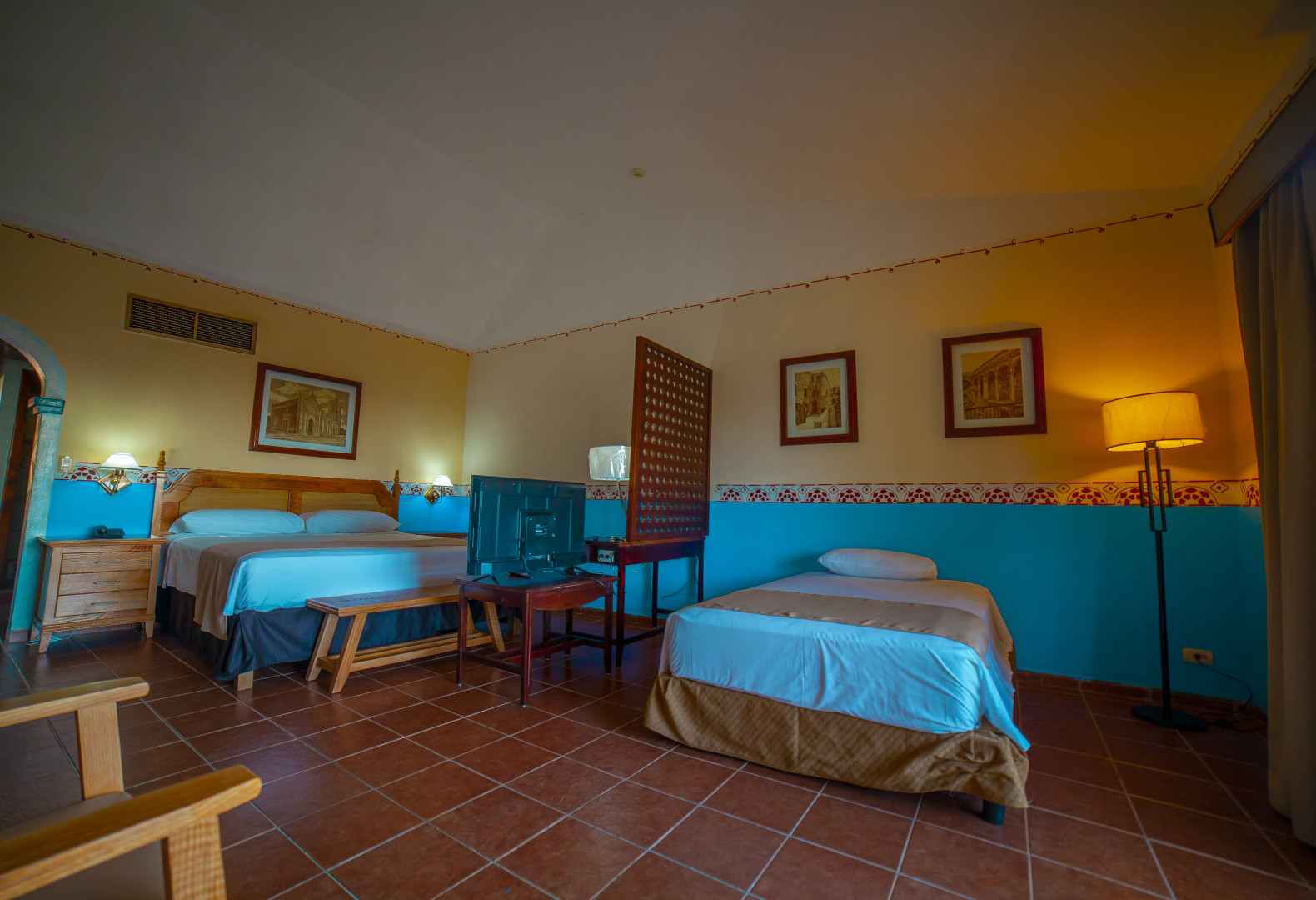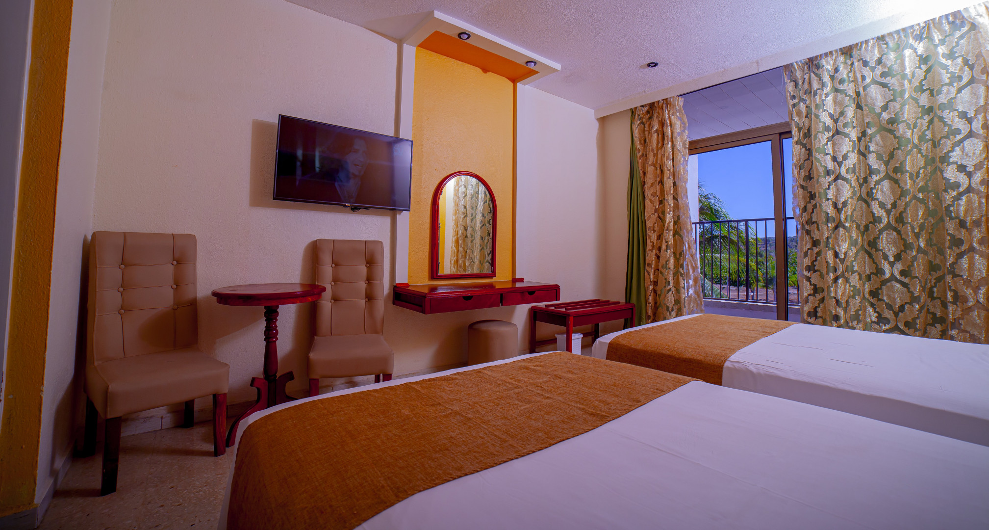 На осенних каникулах в пятером 2018 Отличный отель! Выбирали специально океан! Вылет из Шереметьево, на борту с туристами летели Кубинцы. Полёт 11 часов, пролетали Ноовегию, Гринландию, Канаду, США, виды были неописуемые, от снежной фьордов до райских Баунти видов. Приземление в Ольгин, t - 32*, сухо знойно. До отеля в Гуардалаваке автобусом чуть больше часа с рассказами и наставлениями гида, которого видели за весь отдых 2 раза. На ресепшен встретили с коктелями и танцами, посидели около 30мин. Предварительно делали через tophotels.ru заявку и распечатали приглашение для заселения от отеля, в результате заселились в 2 номера на первом этаже 3х этажной виллы. Чистый номер, ЖК тел, ванная и туалет, 2 кровати (в каждом), кондей, сейф, стулья со столиком, комод, шкаф для одежды. Слегка покоцанный интерьер в Кубинском стиле, но всё рабочее. Номера убирали хорошо и без чаевых, но мы оставляли в основном подарки(русский шоколад, крема для рук и т.п.). Пляж, основной приоритет при выборе отдыха оправдал себя на 100%, белый песок, местами каменные косы, голубой океан, вода 27*, шезлонги, солнцезащитные зонты из тростника, вечно поющие птицы, бегающие ящерицы, разнообразные рыбки, морские ежи если заплывать дальше от берега (конечно не как в Египте, но достаточно), берите маски с трубкой не пожалеете. Еда на Кубе своя, но в чём-то схожа с нашей. Очень много жареного мясо разное, колбасы разные, рыба, выпечка, десерты, мороженое (изобилие разных вкусов), фрукты есть, но не как во Вьетнаме, отдельно СОКИ свежие , видов 5-6, в неограниченном количестве. РОМ во всех барах. Голодными не останетесь. Развлечения в основном у главного корпуса, у бассейна постоянно. Очень много Канадцев. Вечером у основного ресторана живая музыка, танцы, шоу каждый день. Экскурсии брали прогулку на катамаране с погружением в открытом океане и заходом в дельфинарий. И поездка в Сантьяго де Куба. Всё круто. Только надо с собой брать воду, очень жарко, постоянно передвижения на ногах очень утомительно. Остерегайтесь местных которые навязывают помощь в городе, всё это не бесплатно, развод. Ретро тачки особый разговор, полно всяких и из США, и из СССР. Катались на велосипедах, байдарках, катамаранах - всё бесплатно. Сувениры на уровне поделок на уроках труда и всё в этом духе, Чегевара, Фидель, РОМ везде, СИГАР полно, кофе отличный, какао хоть Испанское, но очень вкусное. Цены как в СССР везде одни. С собой вези лучше ЕВРО. Обмен в отеле у ресепшен в окошечке, примерно 1:1,1 ЕВ/Песо Конвертабле для туристов. Для местных валюта своя. Интернет 10ев., но ловит только у ресепшен. Очень много положительного и интересного на Кубе, незабываемый отдых. Кубинцы не богаты, но патриоты своей страны: Куба, Свобода, Фидель.