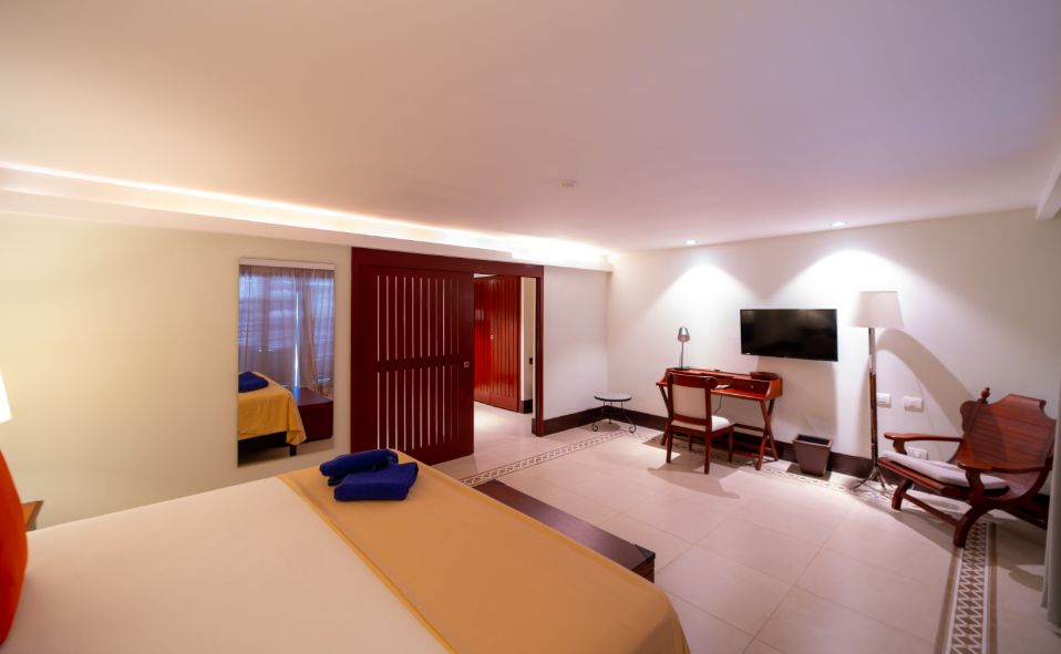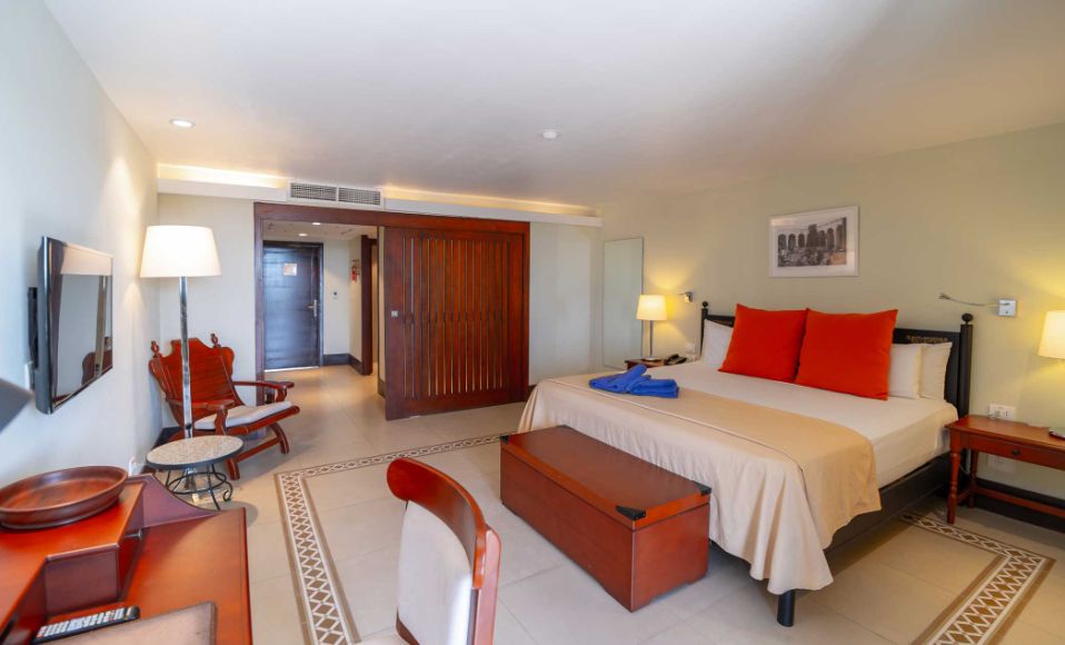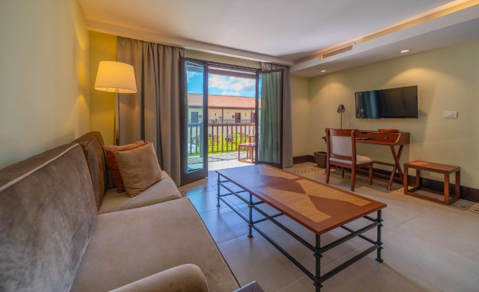 Номер с ванной комнатой с душем, спальней с 1 двуспальной или 2 односпальными кроватями и гостиной зоной с комплектом мягкой мебели. В распоряжении гостей телевизор, кондиционер, мини-бар, сейф, телефон, Wi-Fi, фен, набор гостиничной косметики. Из номера открывается вид на сад или бассейн.