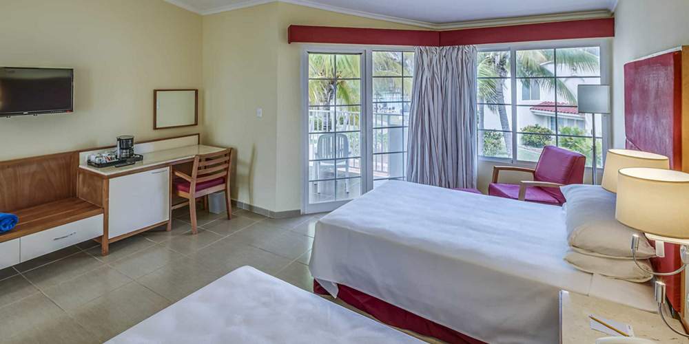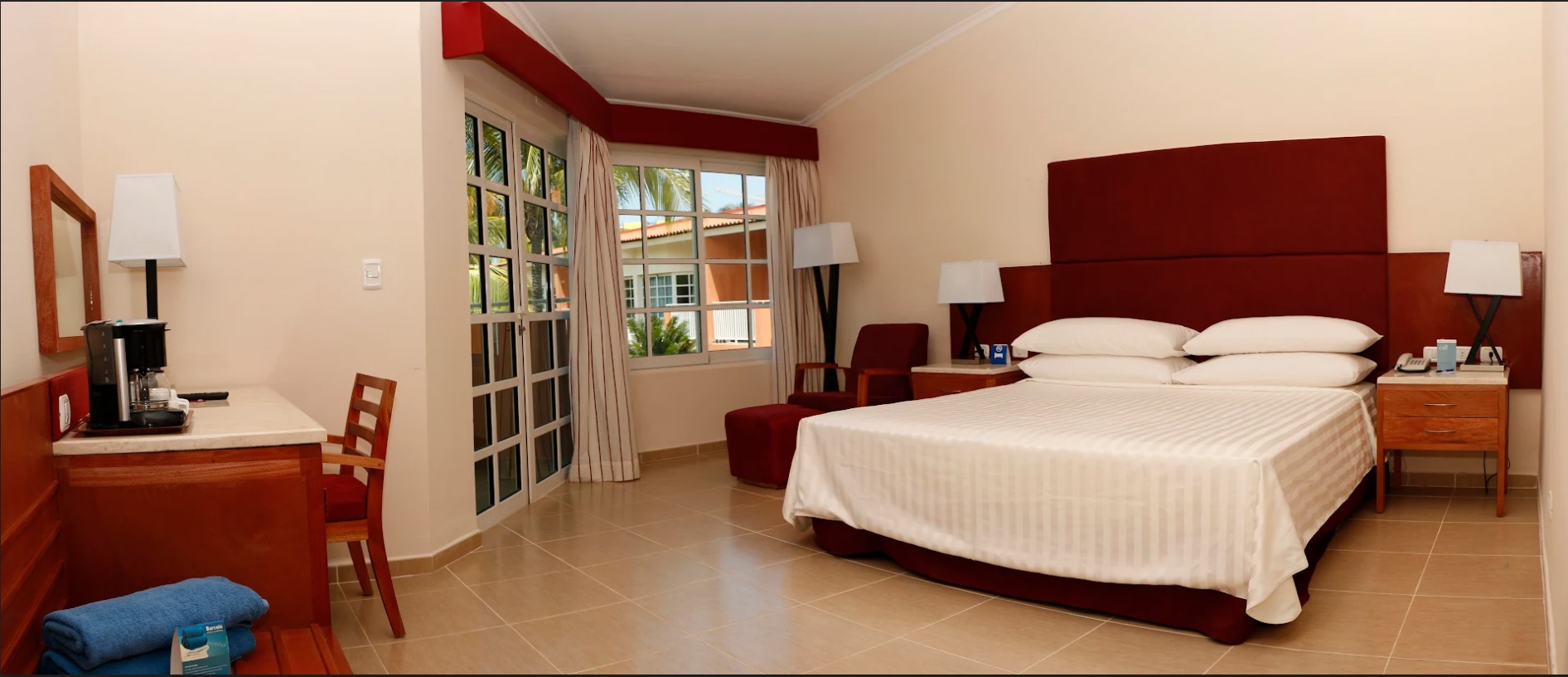 Отдыхали в марте 2025 парой. Номер на третьем этаже с видом на дорогу и бухту. По утрам шумновато, но с закрытой дверью ок. Вид из номера нормальный – пальмы, бухта и дорога, по которой ездят ретро-кары. Номер, конечно, потрепанный. Холодильник без крышки морозильной камеры, поэтому все, что в него положишь – превращалось в вечную мерзлоту. И не закрывалась дверь в туалет. В остальном все работало – кондиционер, сейф, телевизор. Белье меняли за 12 дней один раз. Полотенца два раза. Все чистое. Один раз забрали полотенца, но новые не принесли. Сказал об этом на ресепшн, через полчаса принесли новые. Тараканов в номере нет. Была пара комаров, были уничтожены привезенными спецсредствами. Территория двух отелей (Барсело и Аренас, общая территория) – большая, красивая. Пальмы, красивые аллеи. Три бассейна. Бассейн Барсело мелкий, в нем почти никто не купается. В Аренасе поглубже, но вода в нем показалась менее чистой. Есть еще бассейн между отелями (не знаю к какому он относится), там крайне немноголюдно. Но тоже есть бар). Баров всего 7 – лобби Барсело, 3 бара у бассейнов, лобби Аренаса, снек бар и бар у морского ресторана. На пляже бара нет, самый ближний к пляжу – бар морского ресторана. Кроме пива и коктейлей, в этом баре делают маленькие гамбургеры. На всех барах – пиво, ром, коктейли, кола, фанта. Кола и фанта – негазированные, на вкус странное. В лобби Барсело делают очень хороший кофе. За время отдыха два раза кончался ром (вечером после 22). Утром появлялся. Ром в основном наливают Блек Тирс белый. Иногда его же темный. Изредка – Легендарио. Хочешь в чистом виде, хочешь – коктейли. Наливают от души, особенно если время от времени оставляешь пару сотен песо чаевых. Канадцы ходят с 2-3 литровыми термосами, им льют пиво прямо туда. У нас были термостаканы 0,4 – маловато, берите больше). Завтра, обед, ужин проходят в главном ресторане. Рядом с ним – итальянский аля карт. После 23, когда бары закрываются, итальянский работает как бар – можно взять пива, коктейль или гамбургер. А ля карт на территории всего 4 – ходили в мексиканский и морепродуктов. Мексиканский – такая себе еда и крайне медленное обслуживание, в морепродуктах была очень хорошая рыба и несъедобное севиче из морепродуктов. Главный ресторан – главная проблема отеля. Точнее, не сам ресторан, а странное обслуживание. После того, как набираешь еды, садишься за столик и ждешь официанта, который принесет тебе нож и вилку. Почему-то приборы у них не в открытом доступе, а только через официанта.. Если же нужна маленькая ложка (для мороженого), то это отдельный заход с поиском официанта. Как правило – проще есть мороженое вилкой. Аналогично с напитками – приносит их только официант. При этом нужно его поймать, что непросто. Если удалось – просите принести пиво, сок или воду (вино было первые пару дней, потом кончилось). Еще минут через 5 вам принесут. Причем в непредсказуемой таре – в стакане, в большом бокале, маленьком бокале. Один раз принесли пиво в фужере из-под шампанского. Однажды имел место вот такой диалог: я – «принесите мне стакан, пожалуйста», официант – «вам сок или воду» (это был завтрак), я – «сок», официант – «сок папайи?», я – «да, сок папайи», официант – «сок папайи закончился», разворачивается, уходит… ))) В других отзывах писали про грязные тарелки – факт имел место быть, по крайней мере однажды.