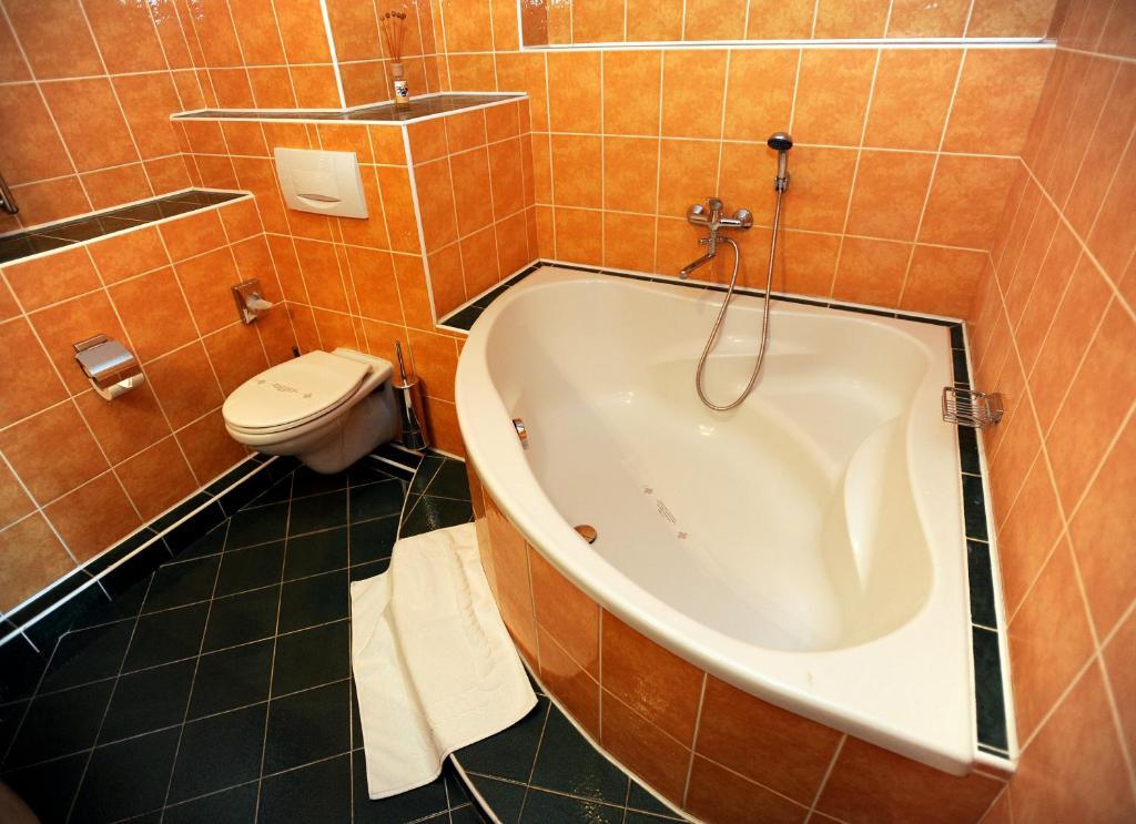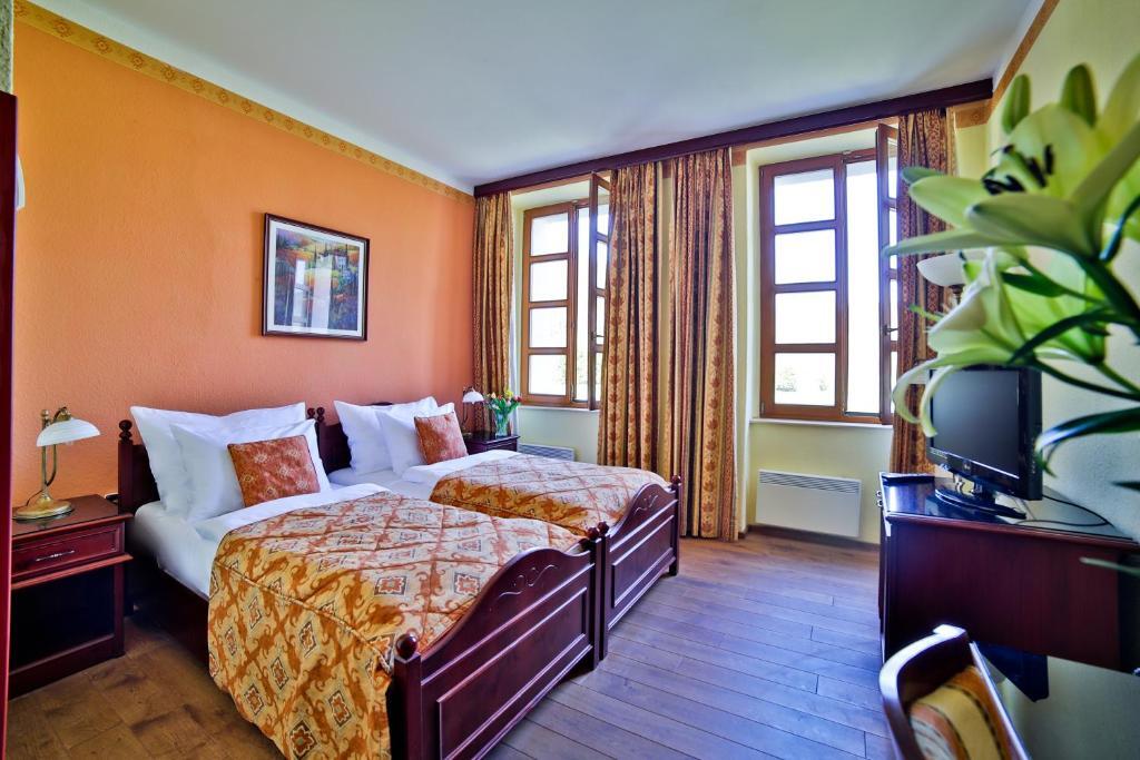 Этот отель, спрятанный на берегу реки под средневековой деревней с замком «сказочный хвост», является настоящим украшением. Очень хорошо оборудованный, отличный ресторан и очень хорошее соотношение цены и качества. Останавливались на одну ночь в поездке из Берлина в Будапешт.