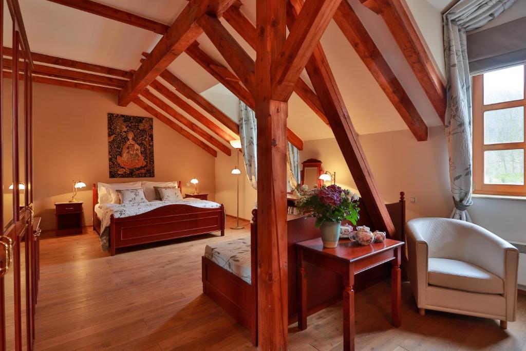 Очень красивое место возле замка Карлштейн, расположенного на берегу реки Бероунка. Действительно очень романтично. Отличный ресторан и закусочная, очень хорошие услуги. Номера, оборудованные А. С. и мини-баром, очень удобные. Я действительно могу порекомендовать, не важно, путешествуете ли вы для романтической поездки или по делам или просто для того, чтобы увидеть какое-то место интересов. Для детей и семей - красивый зоопарк в непосредственной близости от отеля.