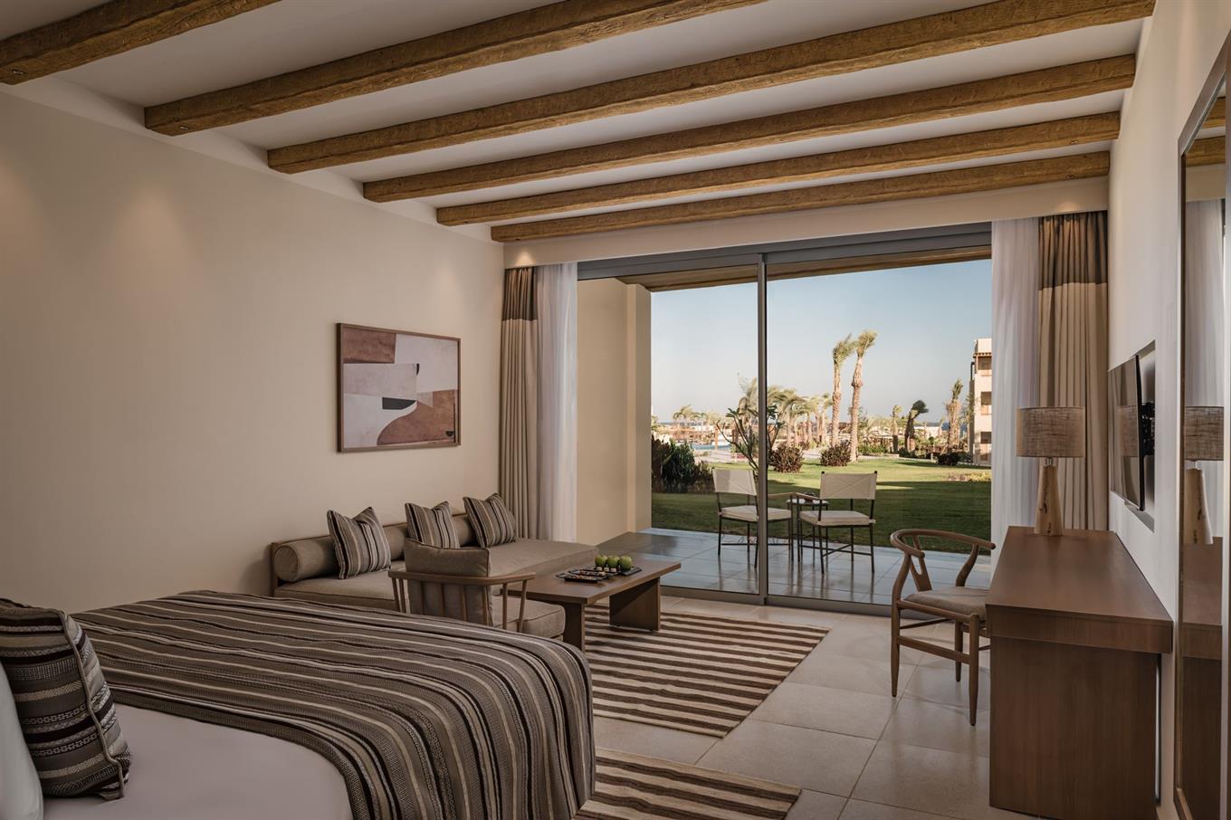 Однокомнатный номер с террасой, выходом к бассейну и собственной ванной комнатой с душем. В числе удобств — телевизор, кондиционер, сейф, мини-бар, телефон, беспроводной Интернет. Гости размещаются на двухспальной кровати queen-size или двух односпальных кроватях.