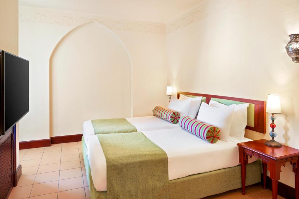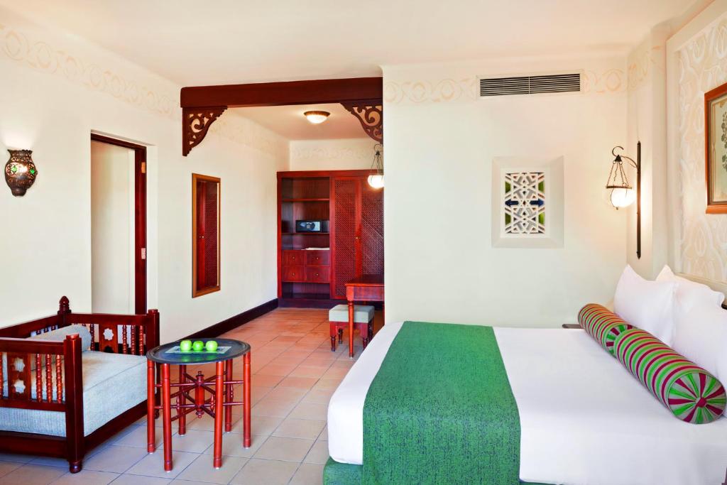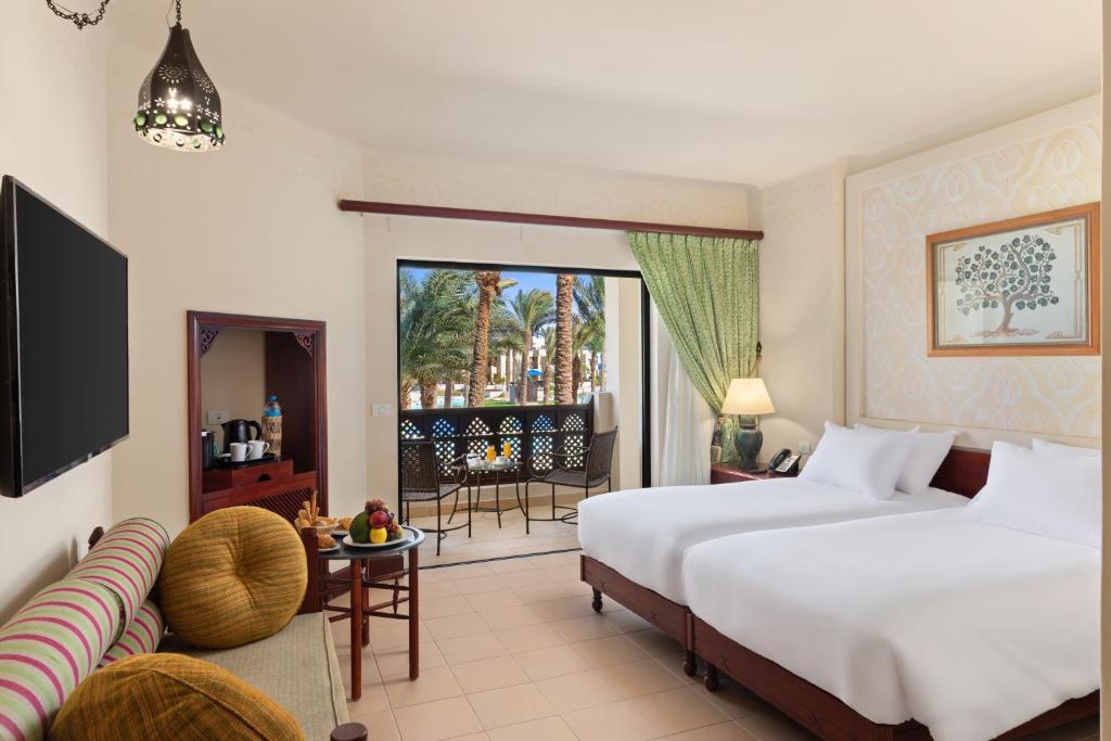 В однокомнатном номере гости размещаются на двуспальной или двух односпальных кроватях, есть балкон/терраса, вид на бассейн или лагуну. Среди удобств телевизор, кондиционер, сейф, мини-бар, чайные принадлежности. В ванной комнате душ, фен, набор гостиничной косметики.