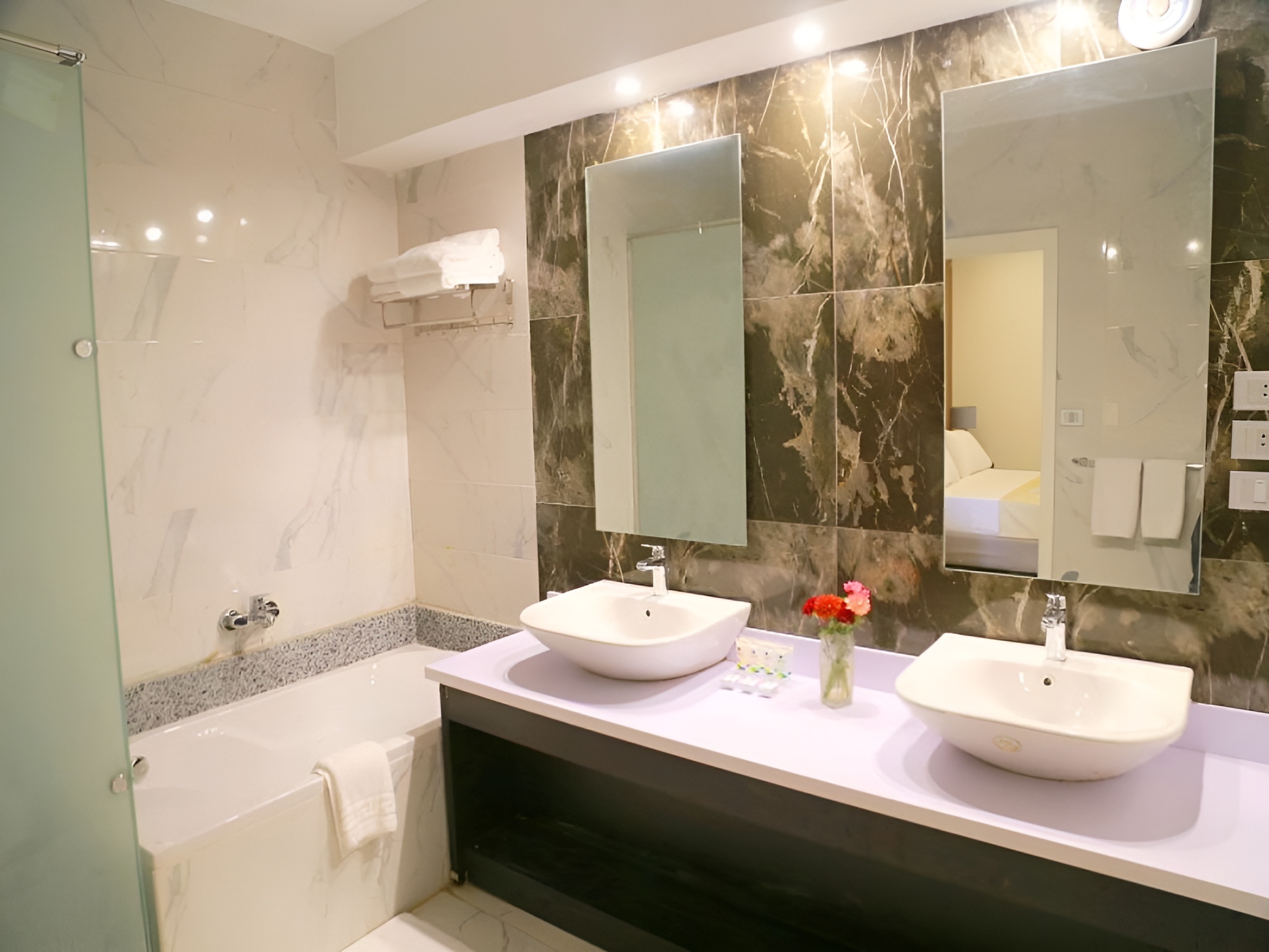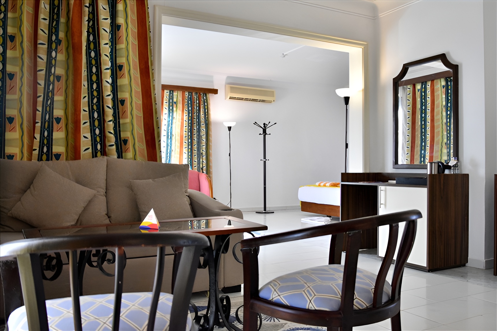 Не верьте всем фотографиям этого отеля — реальное состояние значительно хуже. Нас задержали на долгое время, и едунам так и не предоставили. Мы без еды оставались до 17:00, при этом с нас требовали по 25 долларов с человека за заселение. В номерах и на территории грязь, а отношение к туристам просто ужасное. Фотографии создают ложное впечатление о комфорте и чистоте. Это был сильный разочарование, и я не рекомендую покупать путёвки именно в этот отель — он явно не соответствует заявленному уровню.