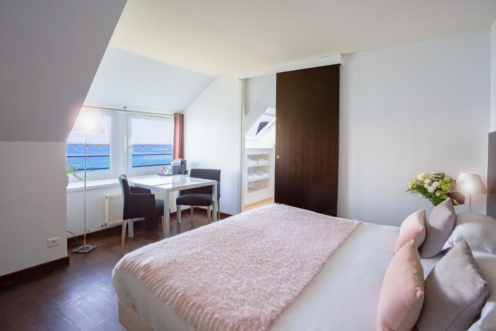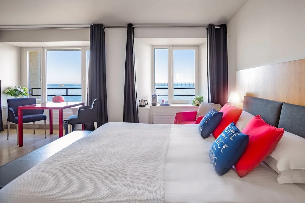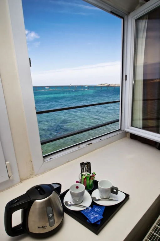 Останавливаясь в предыдущем году на пару ночей, мы сделали первый выбор остаться в нашем обратном пути от посещения семейного имущества в Бретани до посадки на паром. Персонал не мог быть более добрым, принимая наш багаж за несколько часов до официальной проверки, позволяя нам ходить вокруг Роскофф без каких-либо трудностей. Отель расположен в центре и предлагает превосходные удобства с парковкой рядом. Я бы точно порекомендовал остаться, была ли это всего одна ночь или использовать ее как базу для исследования фантастического региона Бретань.
