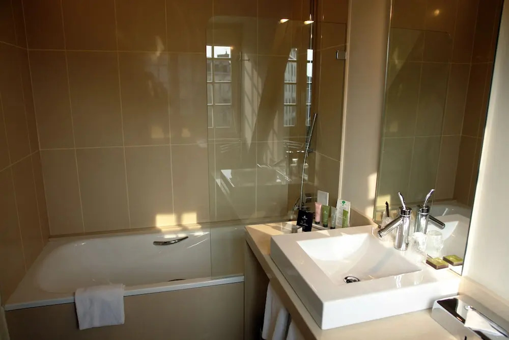 Отель находится в отличном центральном месте, что очень удобно. К сожалению, поблизости нет вариантов бесплатной парковки, а услуги парковки, предоставляемые отелем, крайне дороги. Номер был средним и, конечно, не соответствовал стандарту, ожидаемому от 4-звездочного отеля. Там не было шкафов или надлежащих поверхностей для размещения багажа или личных вещей. В 4-звездочном отеле я бы не ожидал встретить растения и цветы в горшках, которые абсолютно сухие и засохшие — это производит запущенное впечатление. В целом, цена слишком высока для того, что предлагает отель. Мы заплатили € 450 за стандартный двухместный номер на две ночи, исключая завтрак. На эту сумму я рассчитывал гораздо больше.