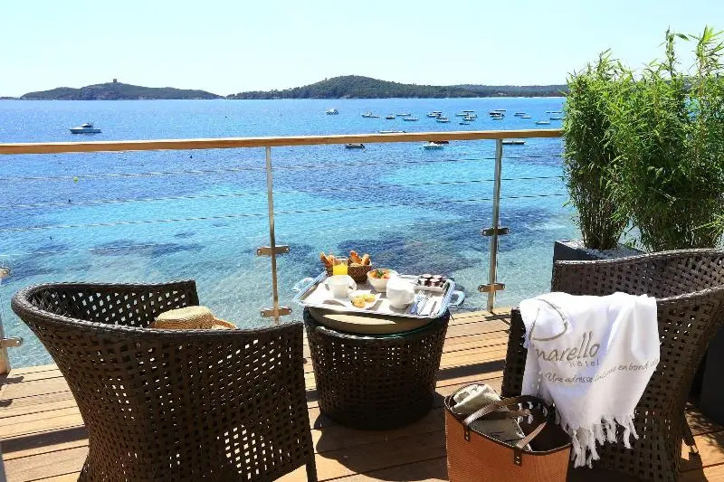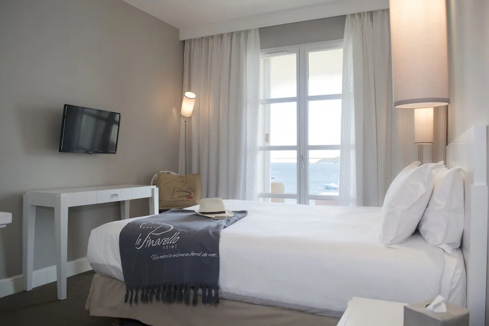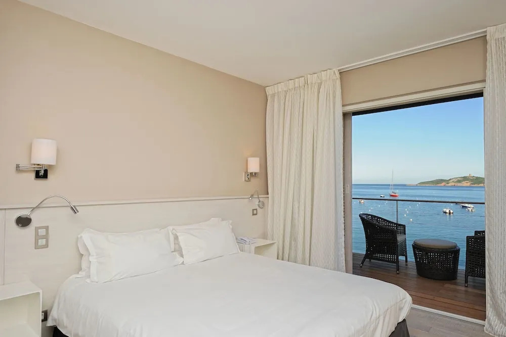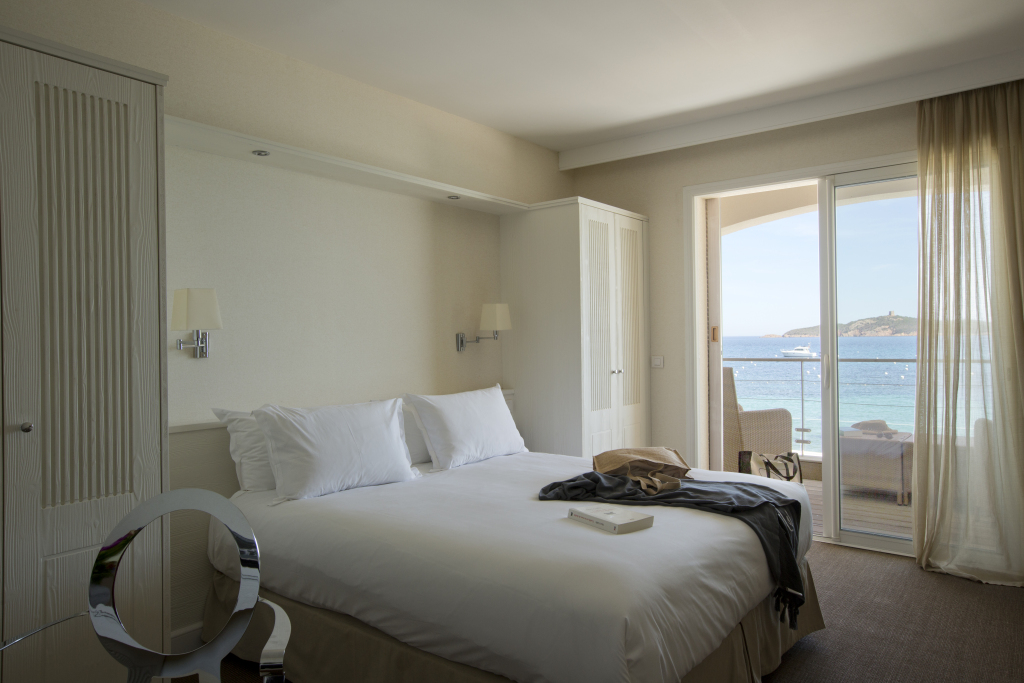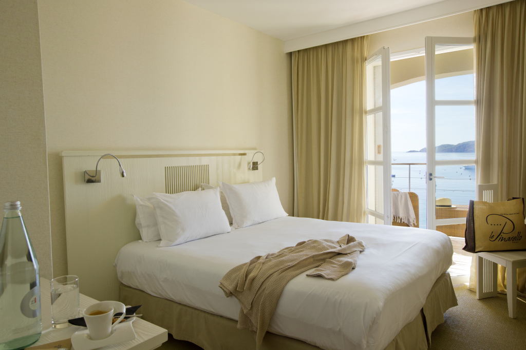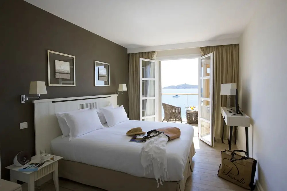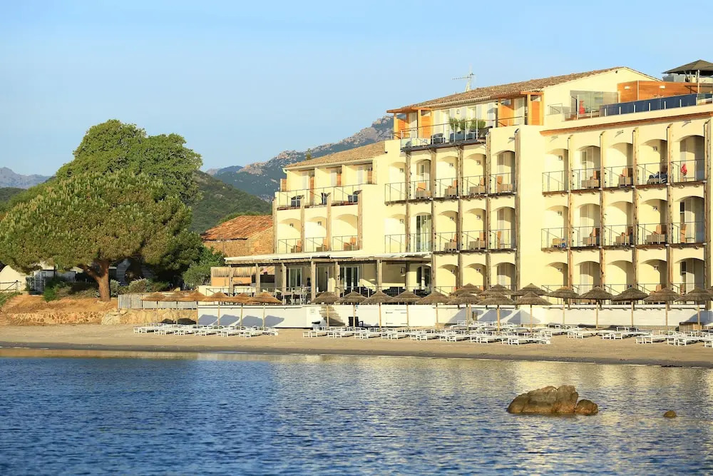 очаровательный ОТЕЛЬ PINARELLO внедрен в один из самых прекрасных дней южной Корсики. на белом песчаном пляже, с видом на море. современный и изысканный интерьер с личной террасой с видом на море.