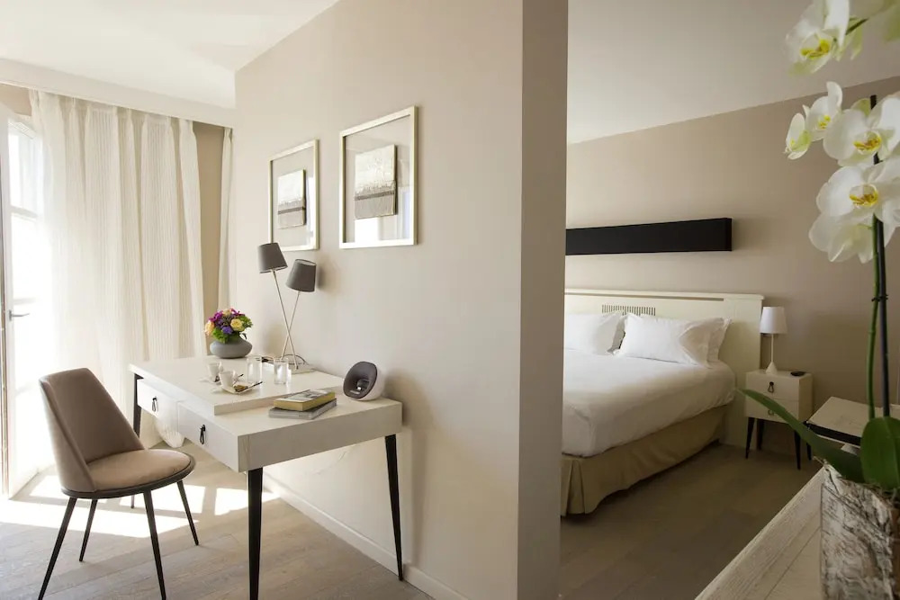 Место отличное, новый, удобно, чисто и современно. Нас поселили в небольшой съемной квартире / люксе через дорогу от главного здания. Завтрак на террасе на пляже был замечательным и очень хороший, с сочетанием континентальной и французской кухни. Что еще более важно, это было очень тихо и спокойно в течение 4 дней, мы останавливались, включая выходные. В целом сезона мог бы быть очень по-другому.