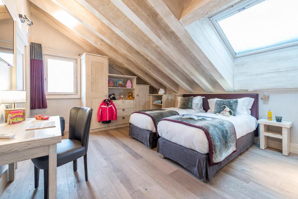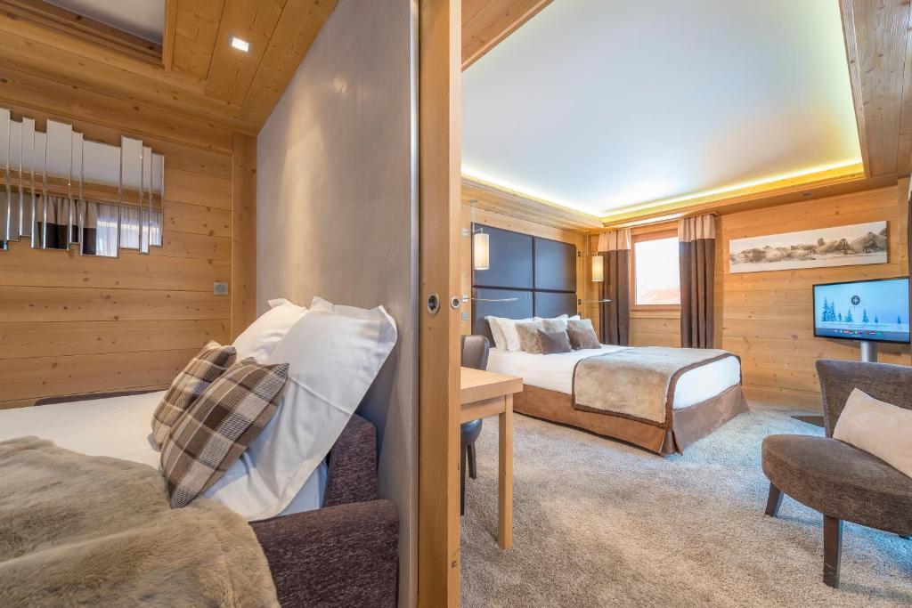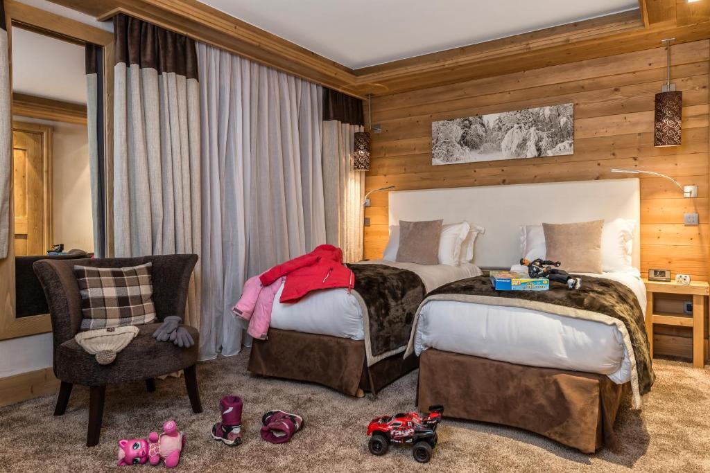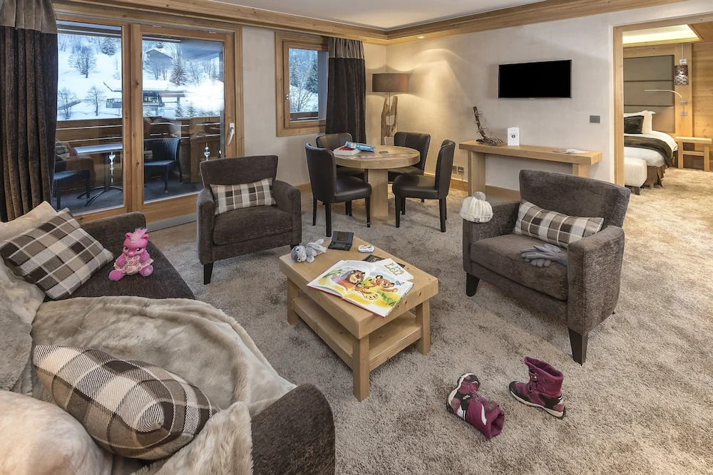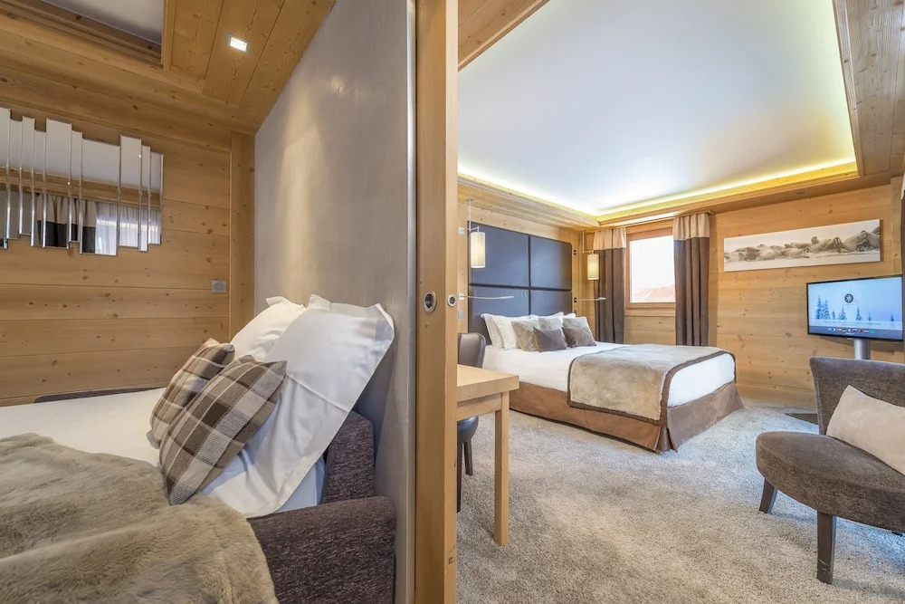 Отличный отель на свои 3 звезды в 5 минутах от подъемников в центре Meribel. Брали семейный номер на 2 взрослых и 2 детей. Номера большие, с прекрасным видом. У детей своя ванная и туалет, что весьма удобно. Взрослым комфортно быть наедине ) Удобный паркинг для машины. Быстрая регистрация. Персонал с отличным английским. Очень хороший интернет. Удобные кровати. Для детей и взрослых супер горячий бассейн на улице - самое хорошее времяпровождение после дня катания в горах. Из минусов - плохие завтраки: два горячих блюда - омлет из готовой видимо смеси и жирные сосиски. Ужин в мясном ресторане тоже не порадовал, абсолютно не вкусно и плохое обслуживание. Если бы поменять поваров и кухню, то все было бы идеально ! - для этого уровня отеля. Но даже при таких недостатках для ценителей вкусных завтраков - отличный вариант для размещения в Meribel.