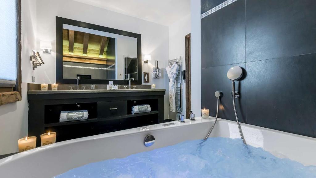 Мы останавливались здесь в марте 2017 года и чувствовали, что у нас есть незаконченные дела на склонах Мерибеля, и вернулись теперь для второго посещения. Тем временем они обновили и модернизировали общественные места с фантастическим шкафчиком для лыж, удобно расположенным на 2-м этаже. Персонал очень дружелюбный и ничего особенного. Новый бар с креслами вокруг него привлекателен, а детская игровая площадка по соседству также удобна для родителей с детьми. Бассейн с подогревом и джакузи - это необходимость после тяжелого дня катания на лыжах, и в бассейне, окруженном снегом, есть что-то потустороннее в костюме. Номера адекватные и хорошо обслуживаемые.