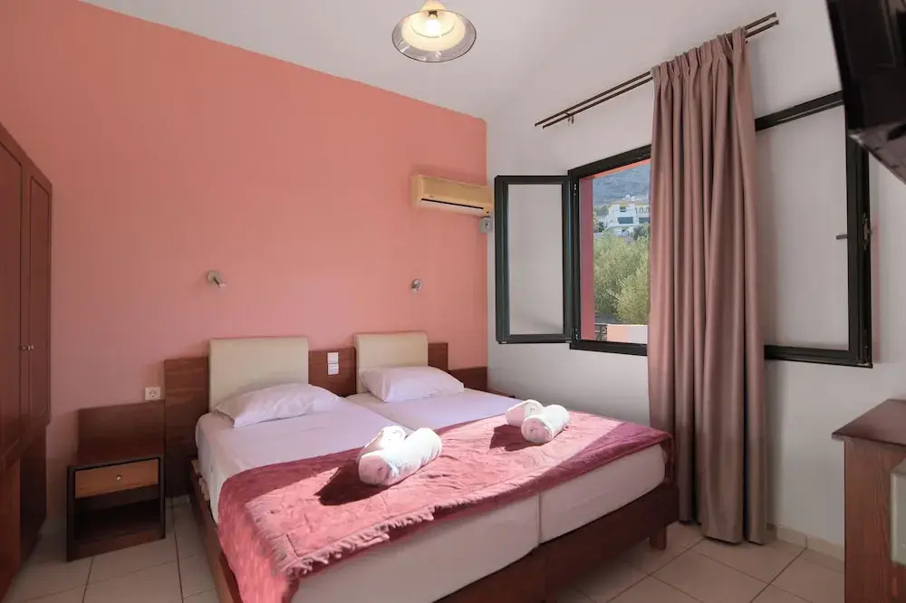 Четырёхместные апартаменты с видом на бассейн двуспальная кровать