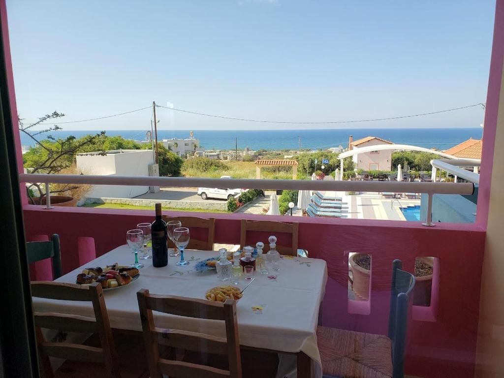 Evalia apartments were an excellent accommodation for us as first time visitors to Crete. The location was perfect as a quiet place to stay accessible by cab anywhere on the island such as beautiful beaches, quaint villages, and historical sites. Hersonissos with an array of bars and restaurants is 2.5 mi away. The international airport of Heraklion is 12 mi away. It is a short walk to the beach. It is not “downtown” or near the “party/bar/club” scene. It’s quiet and lovely. I’ve read reviews from 2022 and I can say for sure the issues discussed then are not there now. The rooms were clean and bright. The linens and towels clean and in good state. Our bed and pillows were super comfortable. We booked directly with Eva. We rented the “penthouse” apartment for the week to get the maximum views, and it was well worth it! The views were stunning, especially the sunsets. Our room came with a large kitchen area, which we didn’t use much of. The windows all came with blackout curtains which we needed in the morning and at night. The breeze was spectacular and the room comes with a private jacuzzi. Our room was well appointed and everything worked well, including the wifi, air conditioning and plenty of hot water in the shower. Eva arranged transport to and from the airport (we do not travel lightly, with 4 large bags). Eva also arranged for 4 days of SCUBA diving for us in three different parts of Crete. Most evenings, we spent in the outdoor bar talking with Eva and other guests. We enjoyed the super relaxed atmosphere of the ‘resort.’ The pool is incredible. Clean and swept every day to remove the Sahara dust, as were all the deck chairs. Did I mention the sunset views? I found the bar an excellent location for an evening cigar after dinner! We had several breakfasts and one large dinner with Eva, her husband Harry and other guests. I thought the meals were wonderful, especially dinner which she crafted just for our dietary needs. The breakfasts were almost too much delicious fresh food! The outdoor bar was ideal and Eva had a great selection of local Creten and Greek wines, including Roki! Eva is a wonderful hostess who strived to make every moment of our stay a delight – and she more than succeeded! From our welcome upon arrival until we left for the airport (very early in the morning to catch the first flight to Athens). If we had any needs or questions, Eva was there to help. She speaks wonderful English and has the knowledge of a tour guide of Crete (and seems to know everyone!) The hotel and grounds are immaculate and safe. We found ourselves leaving our door unlocked for most of the week. Linens changed only once per week, daily room service except Sunday and Wednesday which we were told in advance. .She provided bathroom towels and beach towels. There was plenty of space in the room, but we found we spent most of our time at the bar around the pool when we were at the hotel.