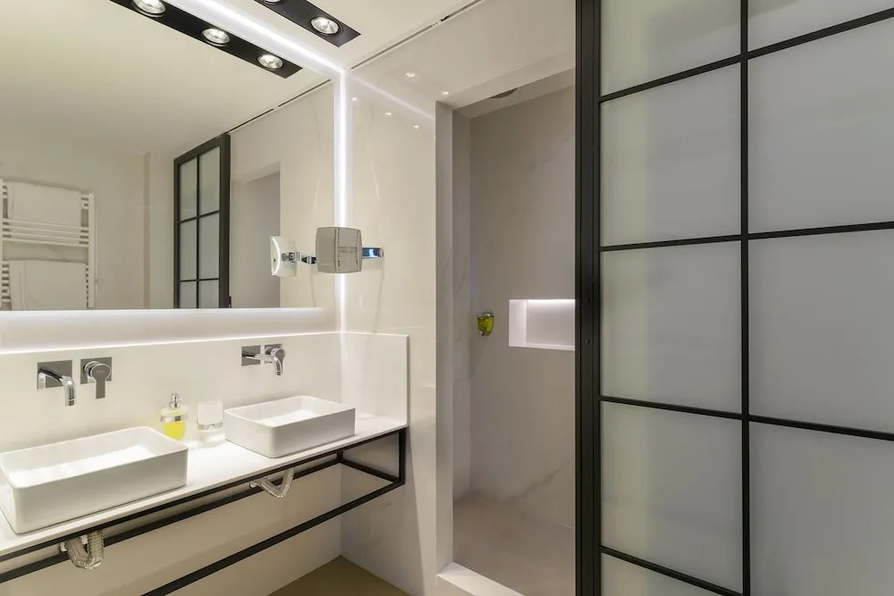 Это трудно написать. Отель современный. Очень центральное расположение с очень хорошими ресторанами поблизости и близко к парковке. Люди очень доброжелательные и завтрак "шведский стол" очень хороший. Но номер хоть и современный, но, должно быть, был задуман человеком, который никогда не останавливался в отеле. В ванной комнате нет шкафа, чтобы убрать одежду, и нет места для туалетных принадлежностей. Зеркало в спальне останавливается у виска (если вы не очень низкого роста! ) Ванная комната находится перед кроватью и отделена стеклянной дверью, так что если вы используете ее ночью слишком плохо для вашего партнера! Есть экспресс-машина, но нет капсул! И это первый раз, когда нас обвинили в использовании комнатного сейфа!