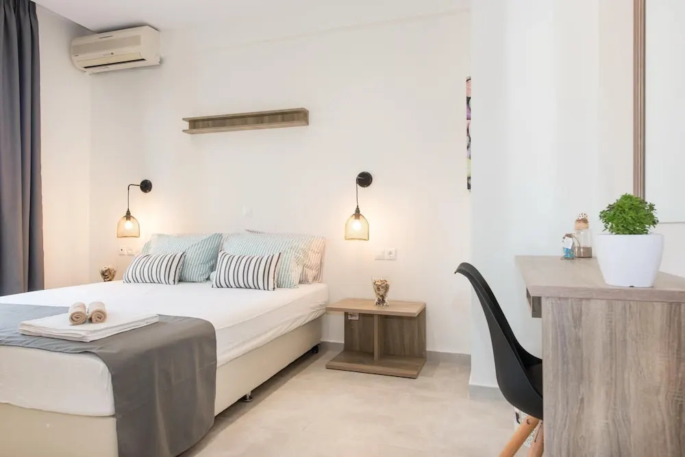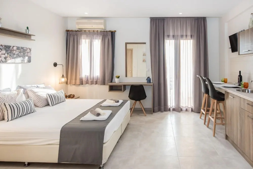 Да ладно. 25 / 30 евро для полной студии, прямо на пляже, что больше вы могли попросить?Намного тише, чем центры Херсониссоса или Малии, но вокруг достаточным количеством магазинов и таверн, если вам не хочется передвигаться по городу.Машину - хорошая идея, если вы хотите посетить район. Майк приветствует вас дружелюбный и тепло и предоставляет любезно, что может оставаться в апартаментах.