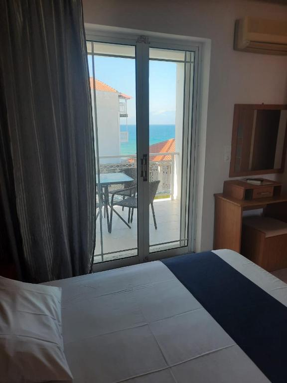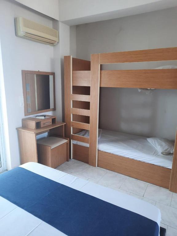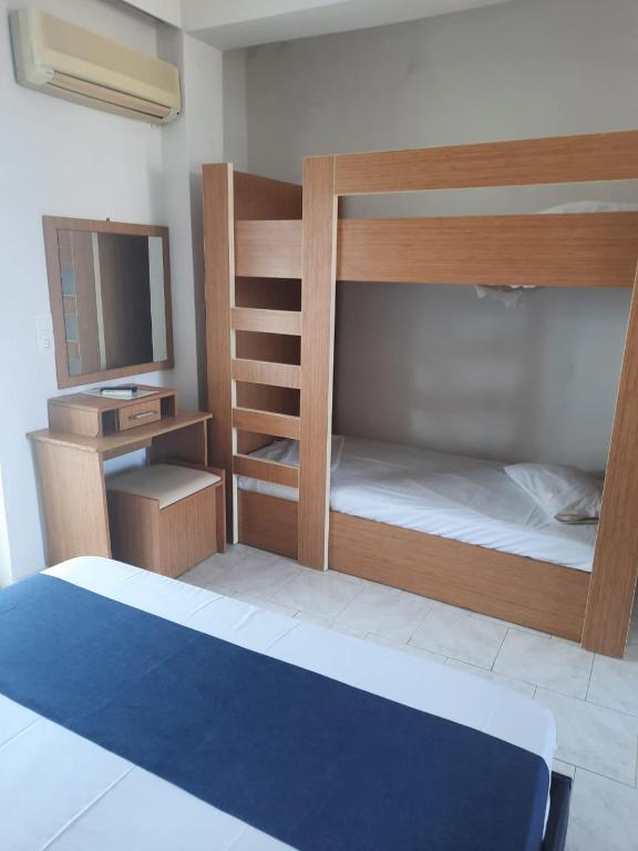 Это - прекрасный семейный отель. Это было безупречно чисто и хорошо расположенное для тихого и подлинного греческого впечатления. Бассейн был чистым. Номера имели бесплатное кондиционирование воздуха и были безупречно чистыми. Основной да, но превосходное соотношение цены и качества с доброжелательным персоналом и обслуживанием.Мне абсолютно очень понравился он. Я надеюсь возвратиться в сентябре.