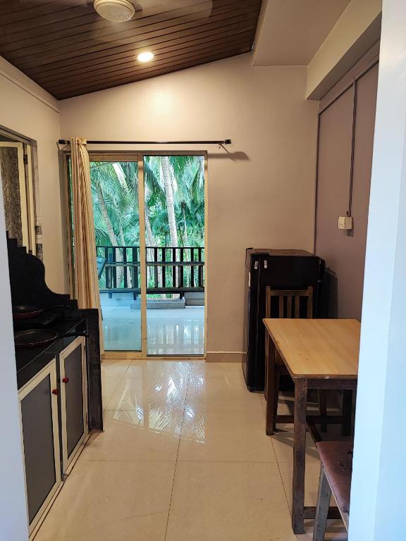This double room features a balcony, private entrance and patio.
