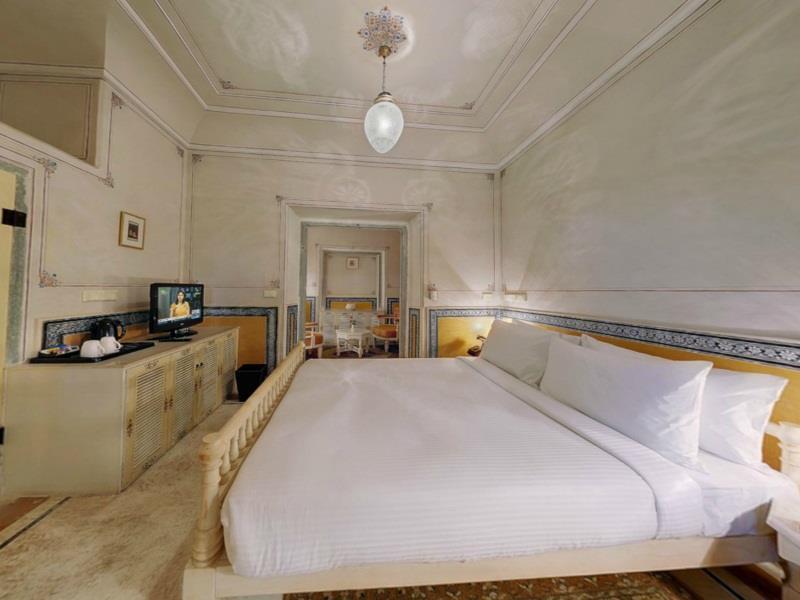 Со времени я смотрел фильм bhool bhulaya, я хотел посетить этот прекрасный отель. и после стольких лет я сделал!Все впечатление 2 ночи превзошло мои ожидания.Мы забронировали исторический люкс. Номер был в самом сердце дворца, с дополнительным ворота к красивым садов дворца. В огромном номере со всеми удобствами и потрясающим видом - я, весь восхитил: )В отеле есть все современные удобства, такие как бассейн, спа, районе развлекательных мероприятий, сувенирный магазин и т.д.; А также есть оригинально 300-летнее наследие все-таки есть в darbar зале, Шиш Махал & Suites.Это видно антиквариат и что королевской семьи. Вечер показывают наследие Раджастхана с народной музыки и танцев во внутреннем дворе.Еда также была хорошая, с разнообразием кухонь на выбор.Я рекомендовал бы пребывание в этом отеле всем, кто собирается провести спокойный и расслабляющий отпуск; и что с вами будут обращаться как с КОРОЛЕВСКОЕ.