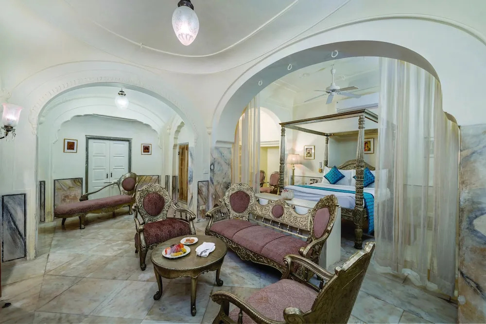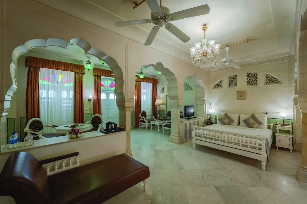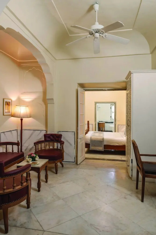 Когда вы Входите в ворота Дворца, вы начинаете чувствовать себя королями. Еда облизывания пальца, в отеле Royal Зале Торжественного приема, который является Столовой сейчас, само по себе незабываемо. вы не знаете, где можно поесть заранее или взять Селфи впервые. Мне очень понравилось. Бассейн Терраса Номера с прекрасным chandliers Зеркало в Ванной красивая Раковина Shell, сделанный из Мрамора, заполненного Лепестками роз во внутренний двор у Входа Зала Торжественного приема, довезет вас до той эпохе Лицензионного платежа. Я приехал сюда с группой молодых людей, в которой кайф.