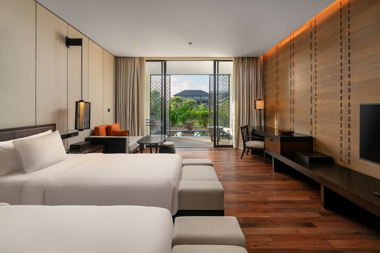 Однокомнатный номер с балконом с видом на сад и собственной ванной комнатой с душем, ванной, феном и гостиничной косметикой. В числе стандартных удобств — телевизор, кондиционер, гладильные принадлежности, сейф, телефон. Гости размещаются на двуспальной кровати king-size/2 односпальных кроватях.