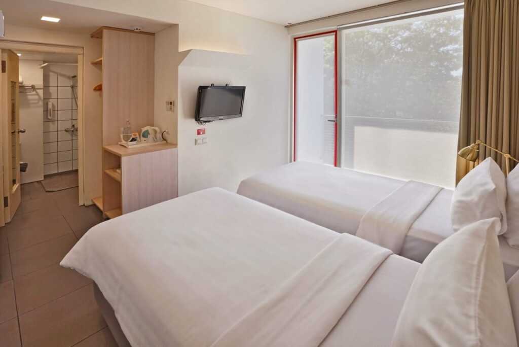 Я останавливаюсь в condotel номере. Номер довольно большой. Есть небольшой обеденный стол, а также маленькая кухня. Один из детей бассейна - теплая вода. Расположение удачное, если вы хотите остановиться в центре. Завтрак хороший. Минус: подушка была мало пахла, возможно, так как я останавливаюсь в пик сезона (lebaran) и около бассейна должно быть больше стула / места. Ковёр перед нашими номерами был мокрым.Но в целом, нам понравилось и мы вернемся, чтобы остановиться в этом отеле, если мы нуждались в остановиться в центре.