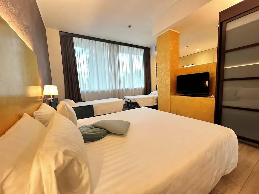 Четырёхместный семейный номер Standard с видом на сад двуспальная кровать