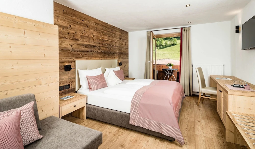 Наш друг, который несколько раз был к Almhof звонком, пригласил нас присоединяться к нему в течение недели. Мы были уже подготовлены найти красивое место, но однажды там, отель действительно превзошел наши ожидания. РАСПОЛОЖЕНИЕ: отель недалеко от центра города, Сан-Вильо, который в свою очередь отлично расположен между замечательными пейзажами. Мы останавливались там летом, но заметили, что отель будет также прекрасным зимой со склонами неба действительно рядом. НОМЕРА: мы действительно наслаждались нашим номером! Просторный, хорошо обставленный, чистый. Кровати удобные и большие, ванная просторная и меблированная с хорошими туалетными принадлежностями и феном, Wi-Fi Интернет работает хорошо, и есть холодильник. В номере мы нашли сумки с полотенцами и тапочками для центра красоты и здоровья. БАССЕЙН и СПА: бассейн достаточно большой, чтобы расслабиться после путешествия пешком с различными водными массажами. Семья Звонка приложила много усилий в бассейне, который красиво оформлен. Спа отличается сауной, турецкой баней, ароматерапией, водяными кроватями, травяными вливаниями и душами. ЕДА: предложение отеля 3/4 формула; это означает, что вы завтракаете, сказочный «merenda» с 14:00 до 18:00 и ужин. У завтрака было много вариантов, итальянских и континентальных. Изящные круассаны, фрукты, йогурты, хлопья, хлеб, яйца, сыр, и многое другое. «Merenda» был моим любимым временем дня: невероятные домашние пирожные, фрукты, даже лазанья и ребрышки. Я, должно быть, получил несколько Kgs только с этим. За завтраком вам дарят меню на ужин, и вы можете выбрать одно первое блюдо, первое и второй курс и десерт. Плюс свободный салатный бар. Вся еда была превосходной! Отель также предлагает (бесплатные) горные велосипеды и электронные велосипеды (15 евро/день) и организует каждый день экскурсию в красивых местах в окружающих долинах и горах. Другая отличная вещь отеля - свой персонал: доброжелательные и хорошо осведомленные люди, которые всегда рады помочь вам и всегда приветствуют вас с большой улыбкой! Я определенно вернусь:)
