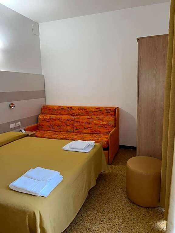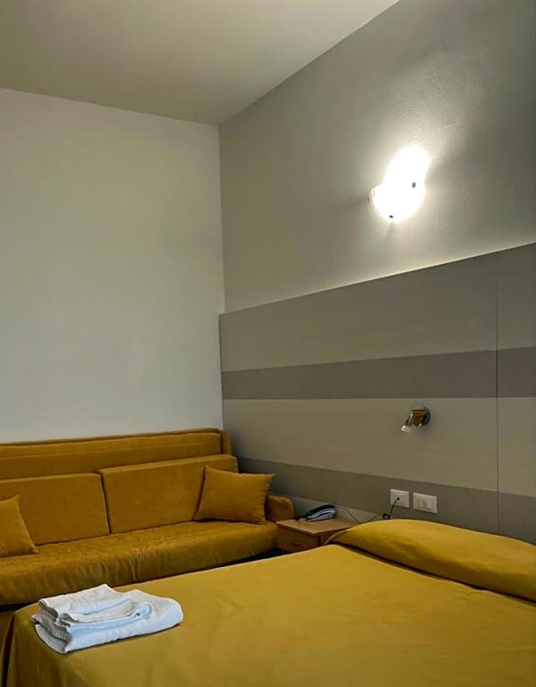 Гостиницу выбирали по критерию близости к морю, и в этом плане не прогадали-набережная в метрах 50ти-нужно только пройти по подземному переходу/туннелю-и вы на море! В номере просится хотя бы косметический ремонт и смена мебели-на одной стене были остатки обоев, другая побелена, причем не очень аккуратно. Душ/Туалетная комната крошечная, даже одному там особо не развернуться. Балкончик неплохой, но со ставень слетает крупными хлопьями старая краска, есть ощущение, что ставни не освежали лет эдак 10. Стулья на балконе грязноватые. Единственное, что понравилось в комнате-это добротные плиточные полы с мозаикой. Завтрак обычный по итальянский меркам. Учитывая прекрасное месторасположение гостиницы и потенциал здания, из него можно было бы сделать кофетку, обновив мебель и сделав свежий ремонт в комнатах.
