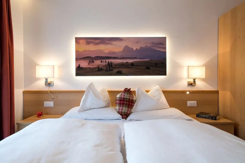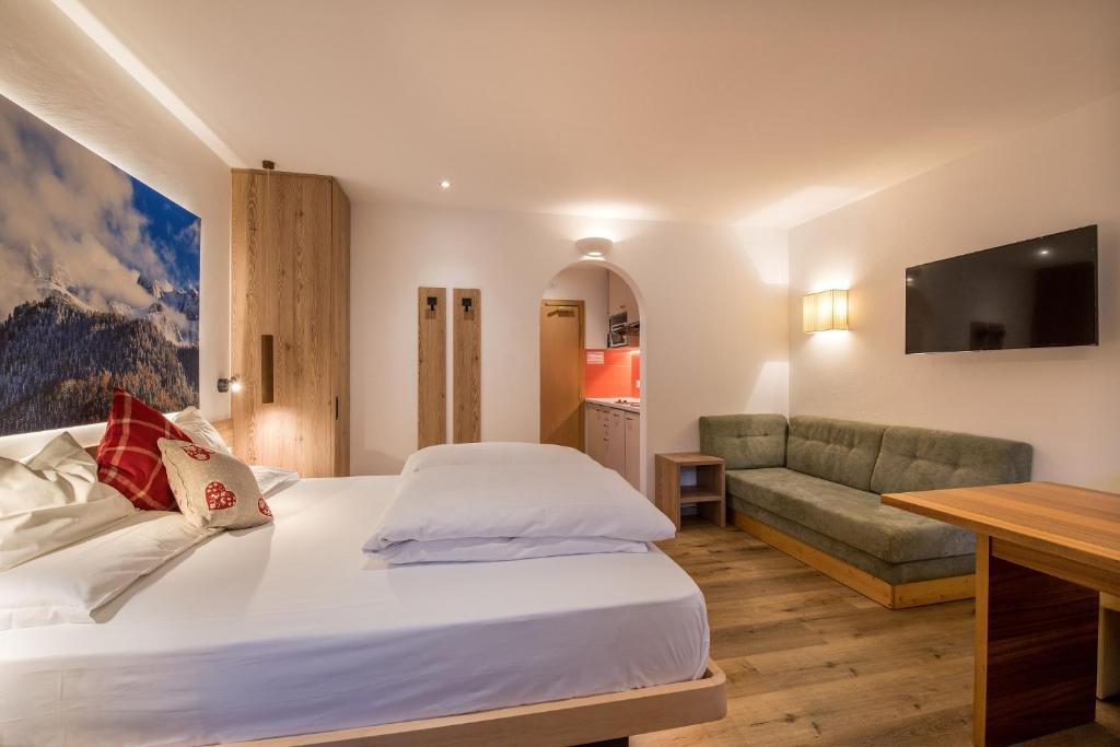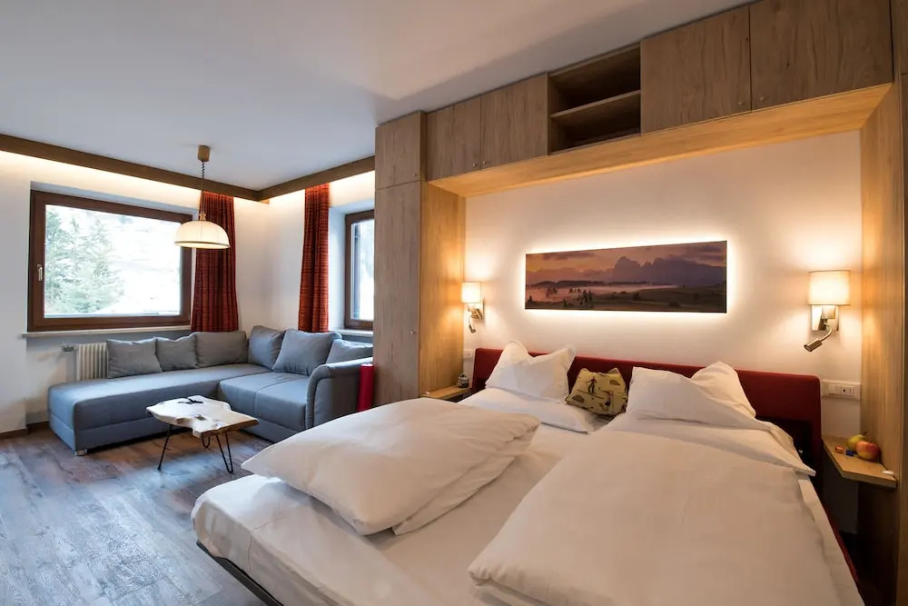 Очень уютные, чистые, прекрасно экипированные апартаменты. Внутри все новое, удобное, посуда разнообразная и в достаточном количестве, балконы, просторно. На завтрак можно взять бесплатно круассаны и кофе.У апартаментов есть просторная бесплатная парковка .Расположены недалеко от подъемника на Монте Пану, до подъемника на Селла Ронду лучше подъехать. Прямо в здании на первом этаже чудесная пиццерия - рекомендую, очень неплохое качество за вменяемые деньги. Также можно заказать вечером в номер, что удобно. Хозяева - очень гостеприимные, помогают во всех вопросах. Фото, описания на сайте полностью соответствуют реальности.