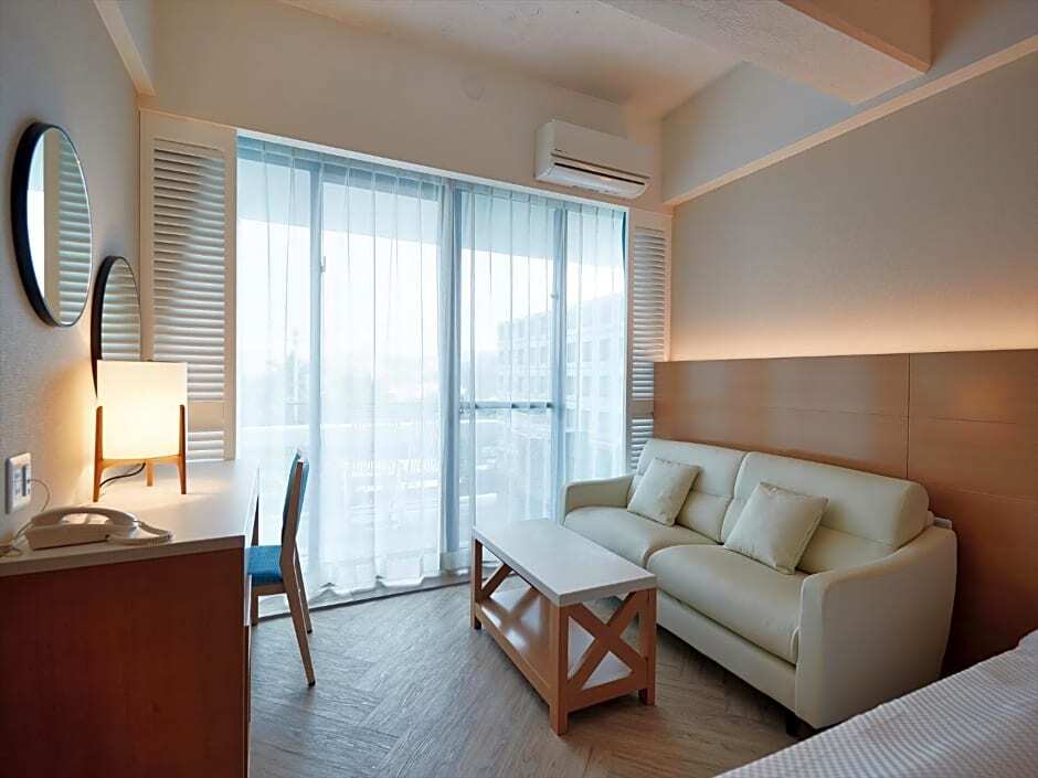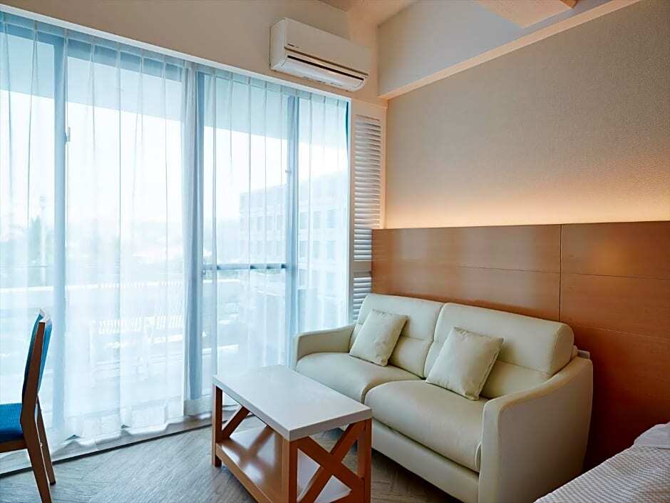 Вот вам настоящий курорт! Огромный отель! Ну чего же здесь только нет! А есть здесь вот что: 1. Само собой номера. Нас было трое взрослых и ребенок 4-х лет. Номер у нас был с видом на город. Довольно большой с тремя полутороспальными кроватями и диванчиком. С большим балконом со столом и стульями (можно посидеть с бокальчиком вечерком, если будет у вас такая возможность). Есть место, где посушить полотенца и купальники после купания, переносная этажерка-сушка тоже предоставляется. Да, есть сейф. Ванная комната разделена на два блока - собственно ванная и душ за стеклянной стенкой и та часть, где собственно располагается умывальник с большим фундаментальным столом-стойкой с зеркалом и множеством туалетно-косметических принадлежностей. Ну и унитаз конечно с целым пультом управления (это же Япония!). 2. Завтрак - шведский стол.... И стол этот протяженный .... и азиатские и общеевропейские блюда присутствуют, как и чай, кофе, фрукты, сладости. В общем, не уйдете голодным. 3. Чудесный пляж - как и полагается со спасателями на вышках, с огороженной зоной купания, с двумя плавучими платформами на акватории. Есть зона водных развлечений, типа банан, вейкборд, еще какие-то приспособления... Ах, да: можно записаться на поездку на островок неподалеку - и на полдня, и даже по-моему на день... И с обедом и без. 4. Бассейн... нет, два - один такой полузакрытый, т.е. в здании. Второй - открытый с видом на пляж. Да , бывало там и тесновато, но в общем ничего. Только вот зонтики частенько закрывали - мол, сильный ветер, могут сломаться.... Эх, а солнце-то палит... 5. Прекрасная парковая территория! Много зелени, пальм, цветущих кустарников, каких-то невиданных растений, лужаек с гамаками, столиками, уютными скамеечками. Есть даже небольшой зал для проведения свадебных церемоний! Представляете? С чудесным видом на море! И есть же еще море.... оно везде - проглядывает сквозь листву... Или же вот оно - бьется внизу об утес.... а на утесе - Русалочка.... 6. И много чего еще. Не понравилось · Трудно сейчас вспомнить... Возможно такого и не было. Хотя... И то, потому что так случилось, что почувствовала себя не очень хорошо. А в таком большом курортном отеле оказывается нет никакой медицинской службы...