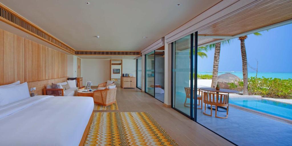 В оснащении пляжной виллы 3 спальни с двуспальными кроватями, 3 санузла с ванной, душем в помещении и на открытом воздухе, гостиная с мягкой мебелью, столовой и мини-кухней, есть балкон, терраса с частным бассейном, обеденной зоной, кабанами для загара. В числе удобств услуги батлера, велосипеды, винный холодильник, пляжная сумка, саундбар, туалетные принадлежности, набор для чая/кофе, кофемашина, подготовка постели ко сну.