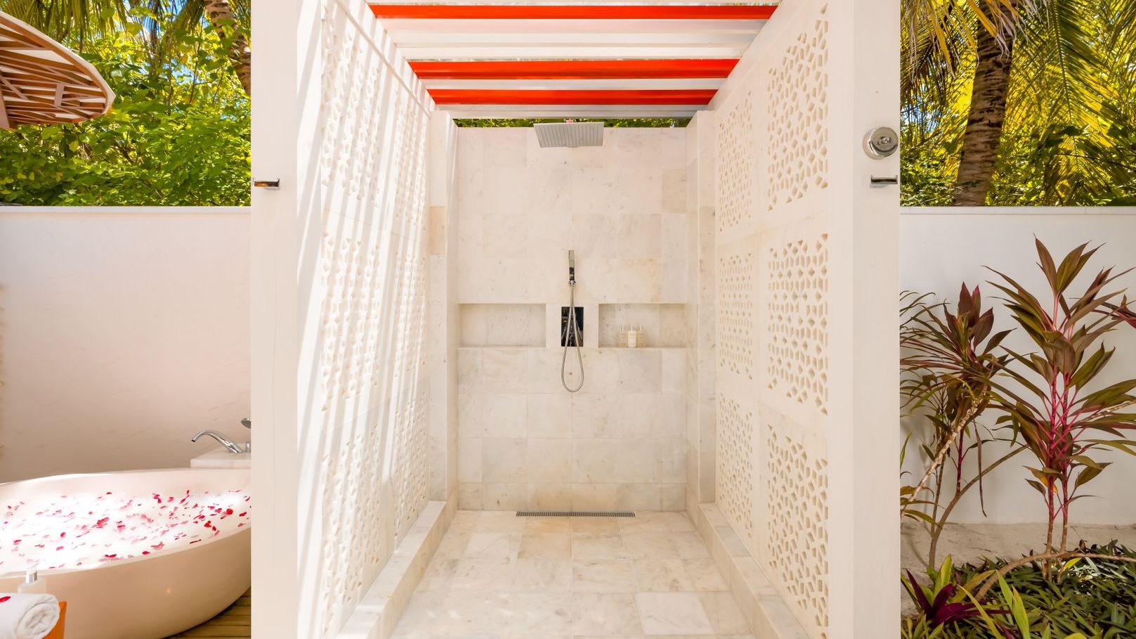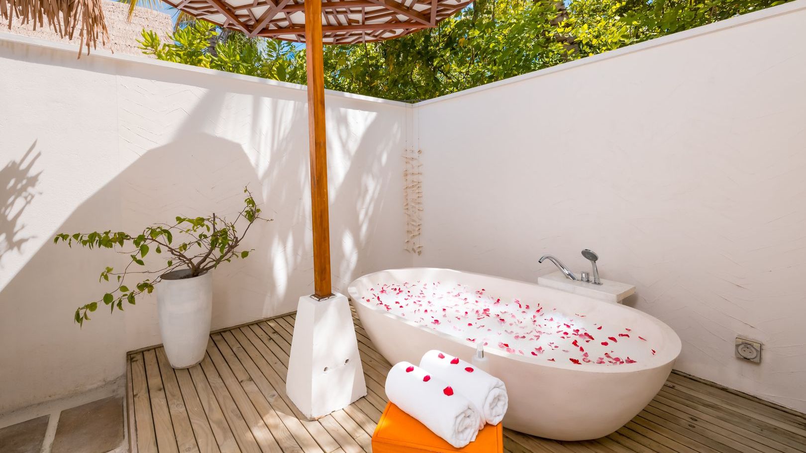 Пляжная вилла включает спальню с двуспальной кроватью, софой, ванную комнату на свежем воздухе с ванной и тропическим душем, двойной раковиной, террасу с зоной отдыха и прямым выходом к пляжу. Предоставляется велосипед, кондиционер, телевизор, телефон, сейф, мини-бар, чайные принадлежности, косметический набор, фен, услуги батлера.