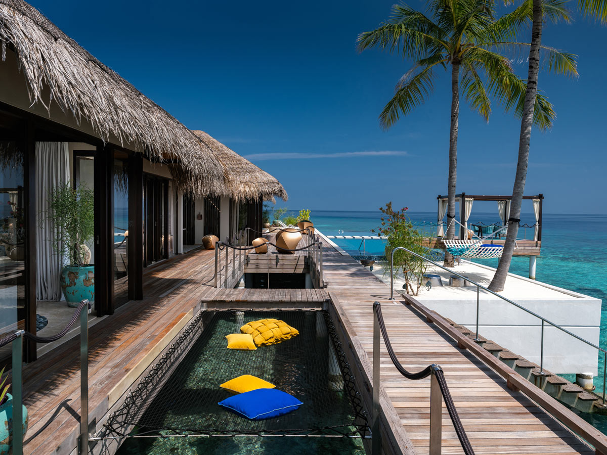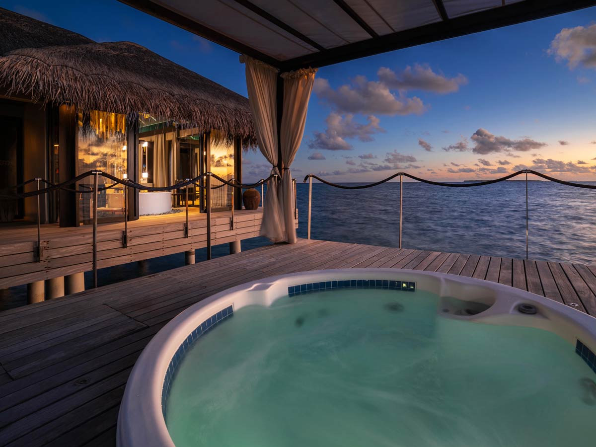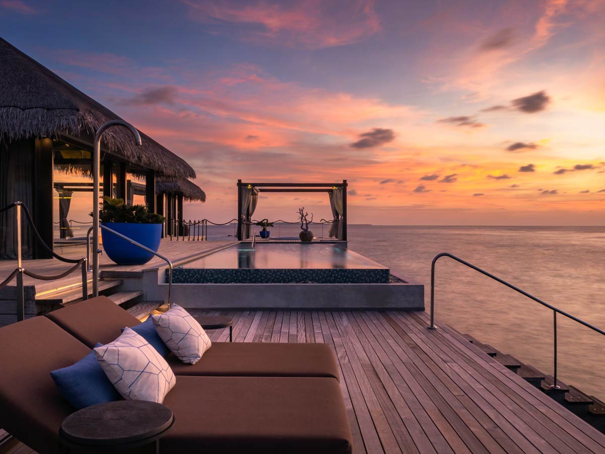 Лучшее место на земле. Это просто рай. Тем кто ищет спокойный размеренный отдых чтоб могли отдохнуть и вы и ваши дети. Тут получится совместить и чисто мальдивский спокойный отдых но в тоже время здесь есть чем себя занять. Муж был рад что здесь есть гольф поле. Он любит эту игру но времени на это мало. Тут можно не только поиграть но вас так же могут научить. Так же есть поле для футбола. Можно поиграть с персоналом. Классный теннисный корт под навесом что дает возможность играть даже днем когда ну очень жарко. В отеле мало вилл, все расположены достаточно далеко друг от друга. Виллы огромных размеров. Мы проживали в обычной но есть куда больше у них даже отдельные названия. Вилла в отличном состоянии, есть все что нужно и у каждой виллы есть свой бассейн. Тут прекрасное обслуживание, к каждой вилле закреплен помощник. Решают все вопросы, персонал старается запоминать все ваши предпочтения. Сервис на высоком уровне! Вас окружат заботой уже по прилету в Мале. Добираться довольно долго и только на гидросамолете лететь около часа. В мале у них свой лаундж от отеля. Там можно отдохнуть, перекусить или принять душ пока ожидаете гидро самолет. Сам остров по размерам средний. Пляж широкий по всему периметру острова. Обойти остров можно минут за 40. Чествуется уединение людей практически не видно. В отеле царит тихая и уютная атмосфера но в тоже время он не лишен развлечений. По вечерам живая музыка или выступления ди-джеев. Можно заняться йогой. Можно поиграть в бильярд или водное поло. Конечно же экскурсии и водные развлечения. Прекрасный спа, есть даже снежная комната. А какой шикарный выбор вин. Винный погреб там шикарная винная коллекция. Погреб сделан в виде башни и сверху есть обзорная площадка со столиками с котрой открывается вид на весь остров. Есть хороший детский клуб и даже русскоговорящие воспитатели. Детский клуб подойдет для разных возрастов. Там есть детский бассейн с горкой и обливалками. Есть игровые приставки. Детская площадка и все это под навесами. В детском клубе есть батут, мягкие горки, для детей устраивают просмотры мультфильмов. Риф простенький. Акулки, мелкая рыбешка… Но каждый вечер к берегу приплывают скаты их можно даже потрогать. Ну это было уже не главное. Мы просто хотели отдахнуть. На Мальдивах мы отдыхаем уже далеко не первый раз и рыбок уже насмотрелись. Каждый выбирает отели под себя но я всем рекомендую не делать это самостоятельно а пользоватся услугами профессиональных турагентов. У нас турагент сам часто отдыхает на Мальдивах и превосходно знает отельную базу. И на подбор вариантов уходит минут пятнадцать причем учтет все ваши пожелания и если нужно посоветует как подготовится к посещению страны или как сдулать выбор лучше. Рекомендую и вам обратится именно к нему. Вы можете связаться с ним через его страничку в соцсети вконтакте там его легко найти по имени фамилии. Питание отличное. Можно брать даже завтрак ужин. Есть потрясающий ресторан на воде, ресторан со столиками в мелком бассейне. Здесь отличные завтраки, выбор еды очень большой. Дизайн отеля просто потрясающий! Везде на острове песчаные дорожки, красивая зелень. В распоряжении гостей велосипеды для катания по острову ну а если лень то можно вызвать машинку и вас отвезут в любую точку острова. В отеле есть сад где выращивают разные цветы. В об