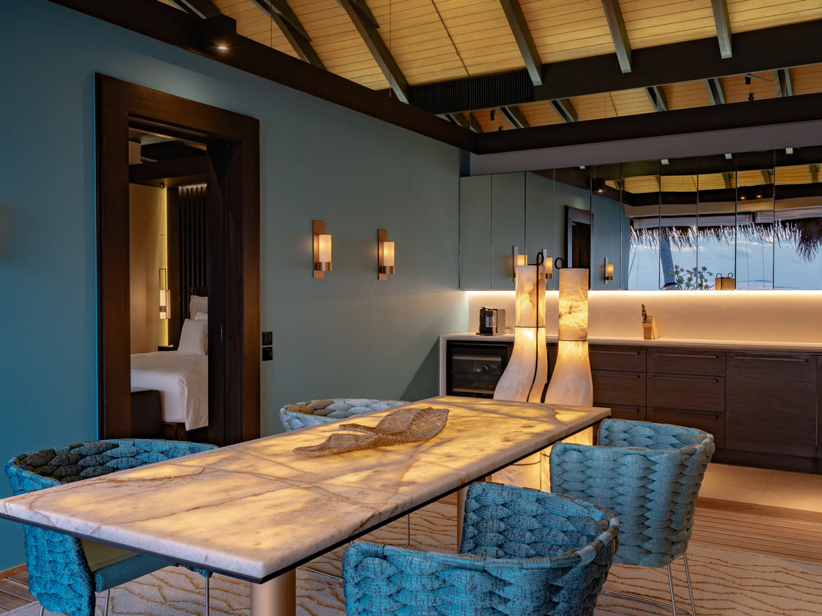 Для тех кто много раз был и сможет оценить детали ) приватная встреча в аэропорту , не надо суетится и все делают за вас вплоть до визы ) остров с идеальным песком ,массой приятностей в виде развлечений - есть все ) теннис, гольф , йога , водные виды -есть все ) кухня очень приличная , персонал работает профессионально )) все в деталях и это видишь каждый день , продуманность во всем) селится лучше в десятых номерах , там где 50-е дует очень и вид похуже . Из минусов - слабый риф , вид портят каменные волнорезы .все люкс - номера супер - все есть )взгляд отдыхает . Посетить в идеале надо )